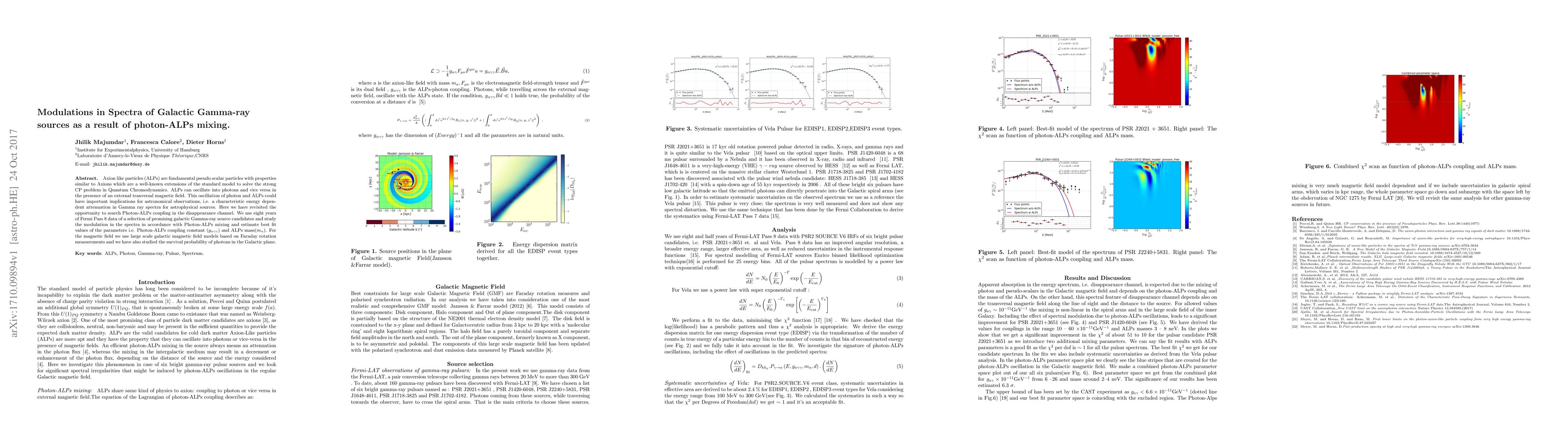 This paper investigates the modulation in gamma-ray spectra from galactic sources due to photon-ALPs mixing, using eight years of Fermi Pass 8 data. It estimates the coupling constant and ALPs mass, considering large-scale galactic magnetic fields for photon oscillation into ALPs and back.