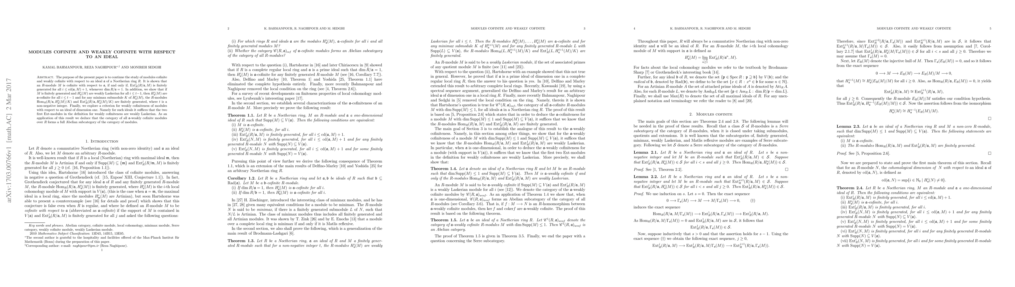 The paper explores conditions for modules to be cofinite and weakly cofinite with respect to an ideal in a Noetherian ring, establishing criteria for weak cofiniteness of modules over ideals of dimension one.
