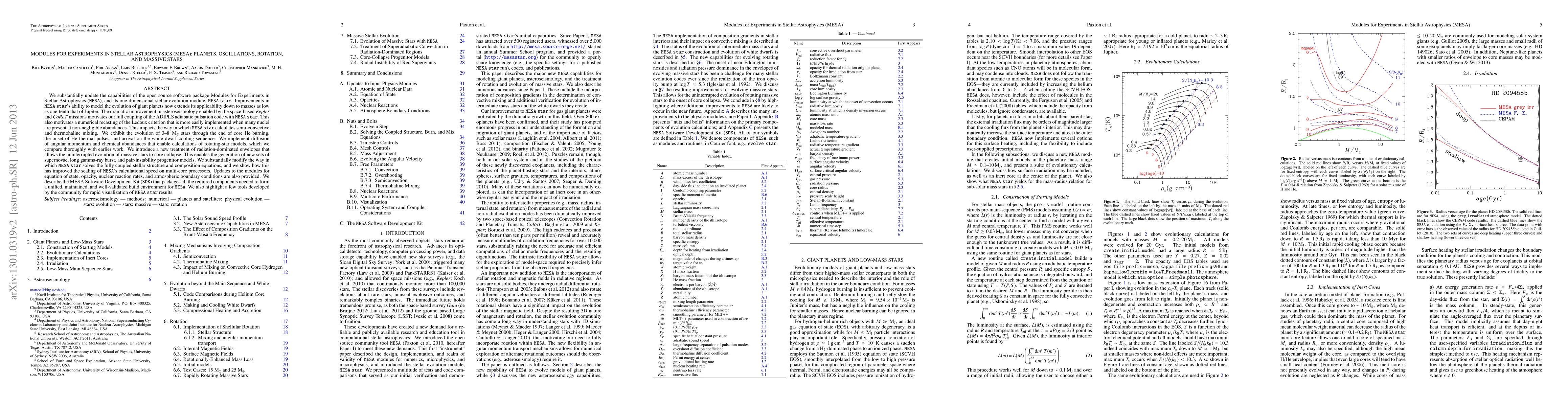 This research paper updates the MESA software package to model giant planets, oscillations, rotation, and massive stars, enabling simulations of high-mass stars through core collapse and improving performance scaling on multi-core processors.