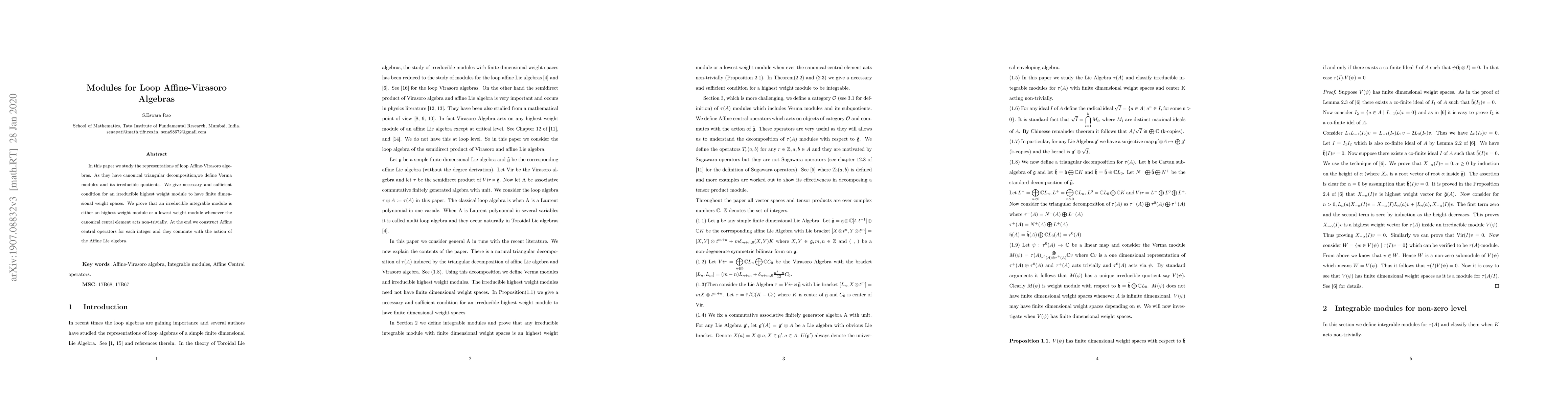 This paper investigates representations of loop Affine-Virasoro Algebras, defining Verma modules and irreducible quotients, and establishing conditions for finite-dimensional weight spaces. It also proves that irreducible integrable modules are highest or lowest weight modules under certain conditions and constructs commuting central operators.