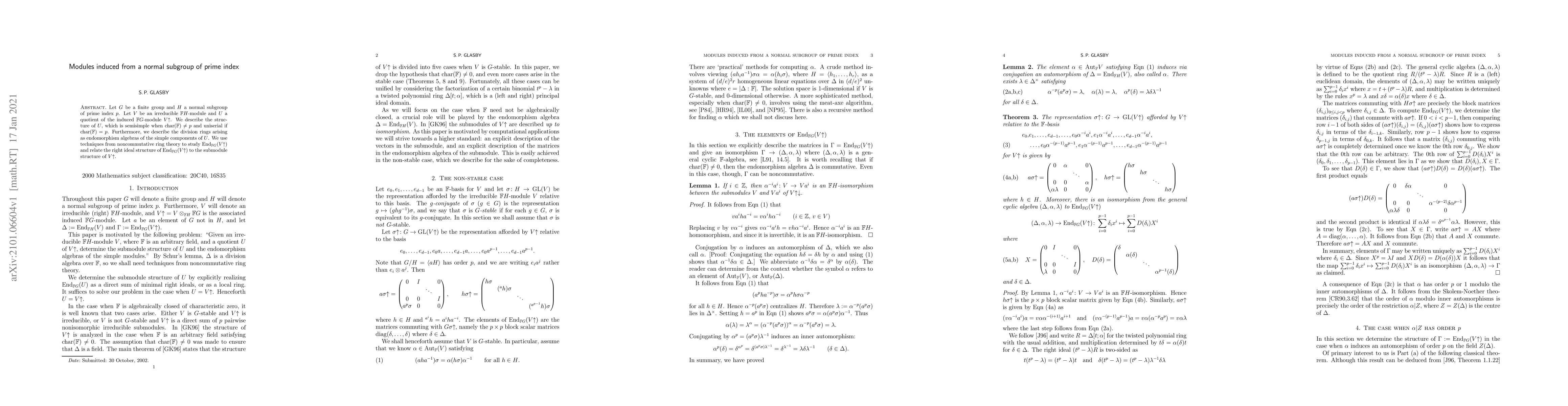 Let $G$ be a finite group and $H$ a normal subgroup of prime index $p$. Let $V$ be an irreducible ${\mathbb F}H$-module and $U$ a quotient of the induced ${\mathbb F}G$-module $V\kern-3pt\uparrow$. We describe the structure of $U$, which is semisimple when ${\rm char}({\mathbb F})\ne p$ and uniserial if ${\rm char}({\mathbb F})=p$. Furthermore, we describe the division rings arising as endomorphism algebras of the simple components of $U$. We use techniques from noncommutative ring theory to study ${\rm End}_{{\mathbb F}G}(V\kern-3pt\uparrow)$ and relate the right ideal structure of ${\rm End}_{{\mathbb F}G}(V\kern-3pt\uparrow)$ to the submodule structure of $V\kern-3pt\uparrow$.