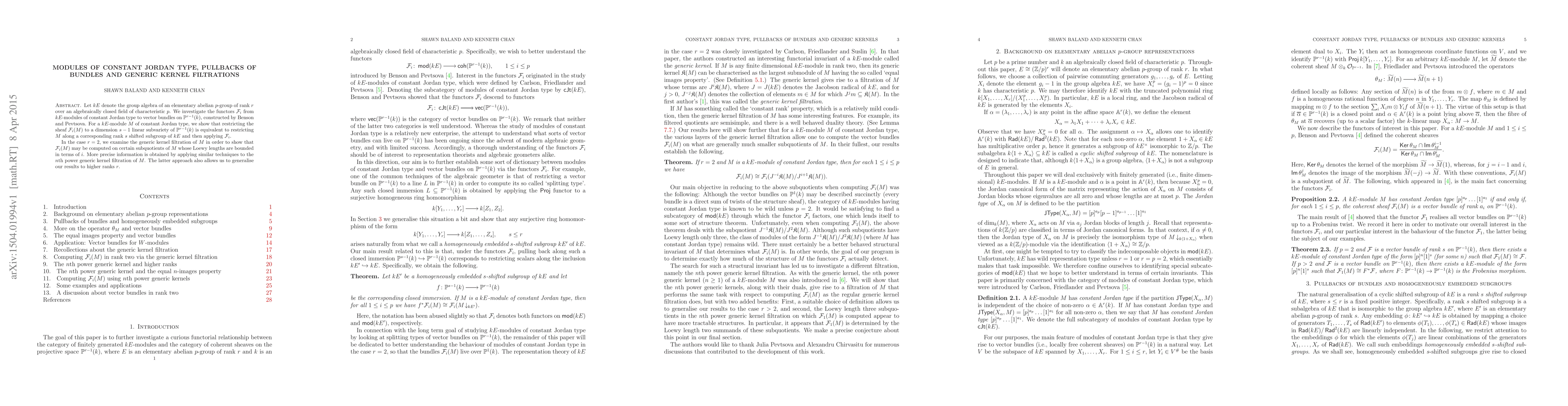 Let $kE$ denote the group algebra of an elementary abelian $p$-group of rank $r$ over an algebraically closed field of characteristic $p$. We investigate the functors $\mathcal{F}_i$ from $kE$-modules of constant Jordan type to vector bundles on $\mathbb{P}^{r-1}(k)$, constructed by Benson and Pevtsova. For a $kE$-module $M$ of constant Jordan type, we show that restricting the sheaf $\mathcal{F}_i(M)$ to a dimension $s-1$ linear subvariety of $\mathbb{P}^{r-1}(k)$ is equivalent to restricting $M$ along a corresponding rank $s$ shifted subgroup of $kE$ and then applying $\mathcal{F}_i$. In the case $r=2$, we examine the generic kernel filtration of $M$ in order to show that $\mathcal{F}_i(M)$ may be computed on certain subquotients of $M$ whose Loewy lengths are bounded in terms of $i$. More precise information is obtained by applying similar techniques to the $n$th power generic kernel filtration of $M$. The latter approach also allows us to generalise our results to higher ranks $r$.