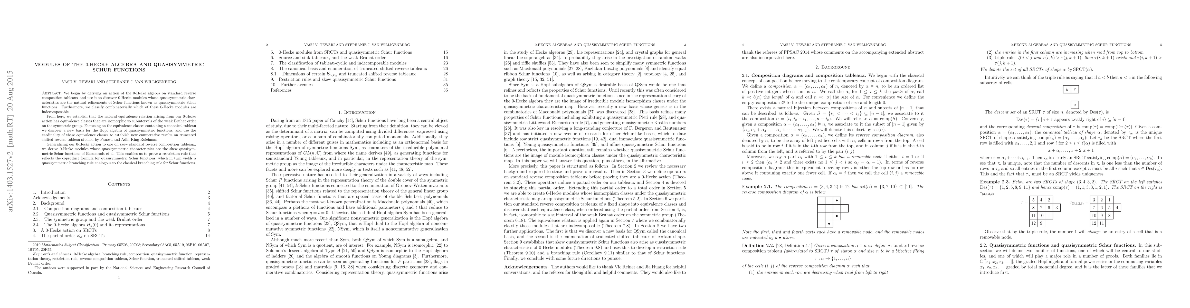 This paper explores the action of the 0-Hecke algebra on reverse composition tableaux to define 0-Hecke modules, whose quasisymmetric characteristics refine Schur functions to quasisymmetric Schur functions. It establishes new bases for quasisymmetric functions and derives a quasisymmetric branching rule, enhancing the understanding of these algebraic structures.