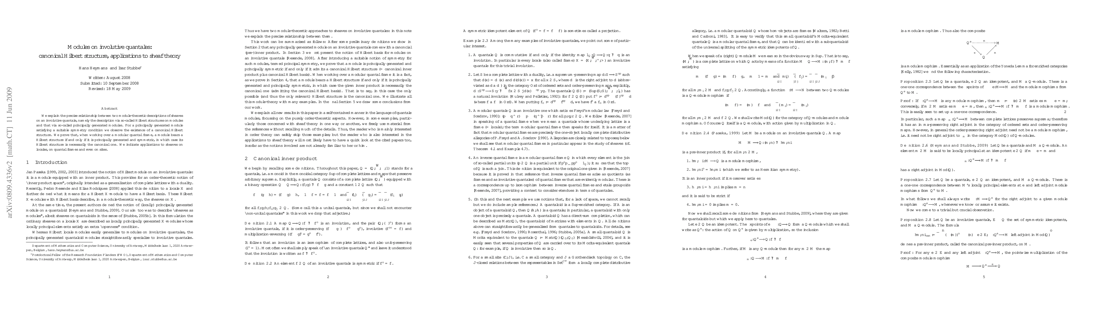 Researchers establish a precise relationship between two module-theoretic descriptions of sheaves on involutive quantales, discovering that certain modules bear a canonical Hilbert structure under specific conditions.