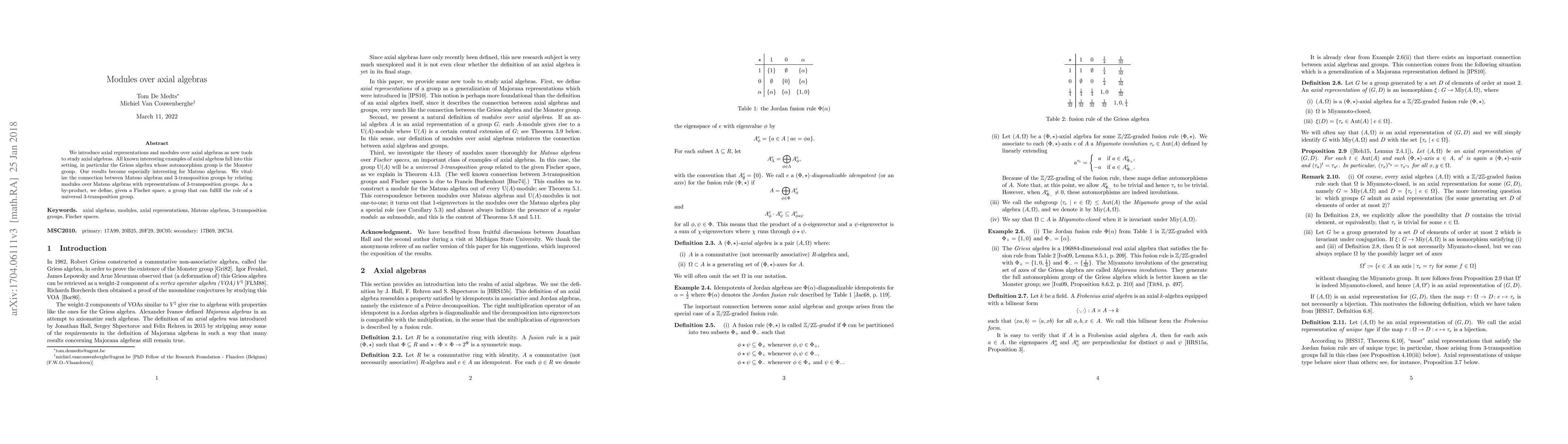 This paper introduces axial representations and modules over axial algebras, applying these tools to study axial algebras, including the Griess algebra and Matsuo algebras. It establishes a significant link between Matsuo algebras and 3-transposition groups, and defines a group associated with Fischer spaces that acts as a universal 3-transposition group.