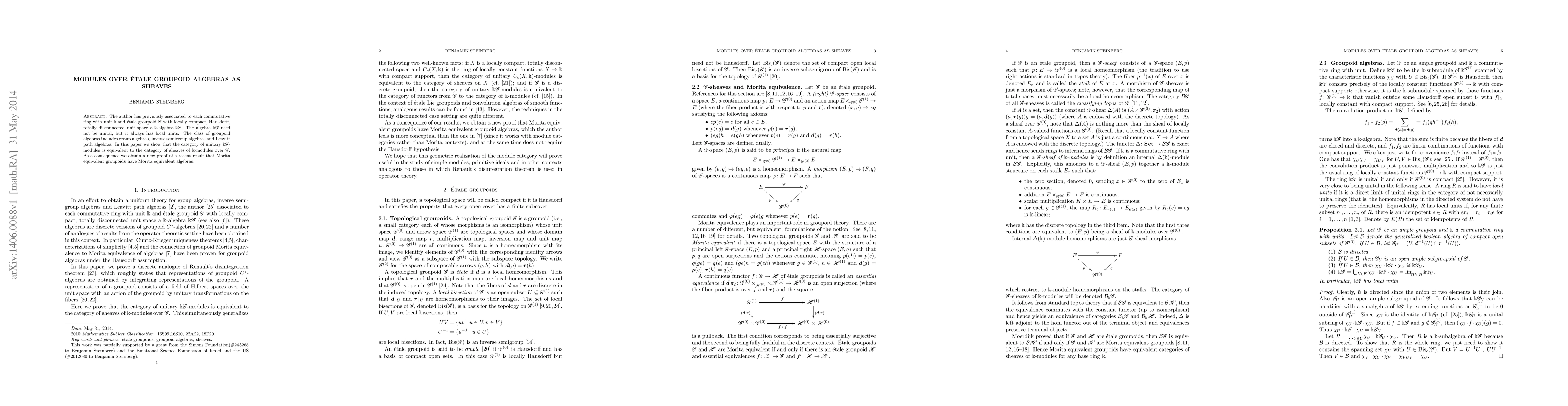 This paper establishes an equivalence between the category of unitary modules over $\Bbbk\mathscr G$ and the category of sheaves of $\Bbbk$-modules over the \'etale groupoid $\mathscr G$, extending the class of groupoid algebras to include group algebras and Leavitt path algebras. This result also provides a new proof for the Morita equivalence of groupoids translating to Morita equivalence of their associated algebras.
