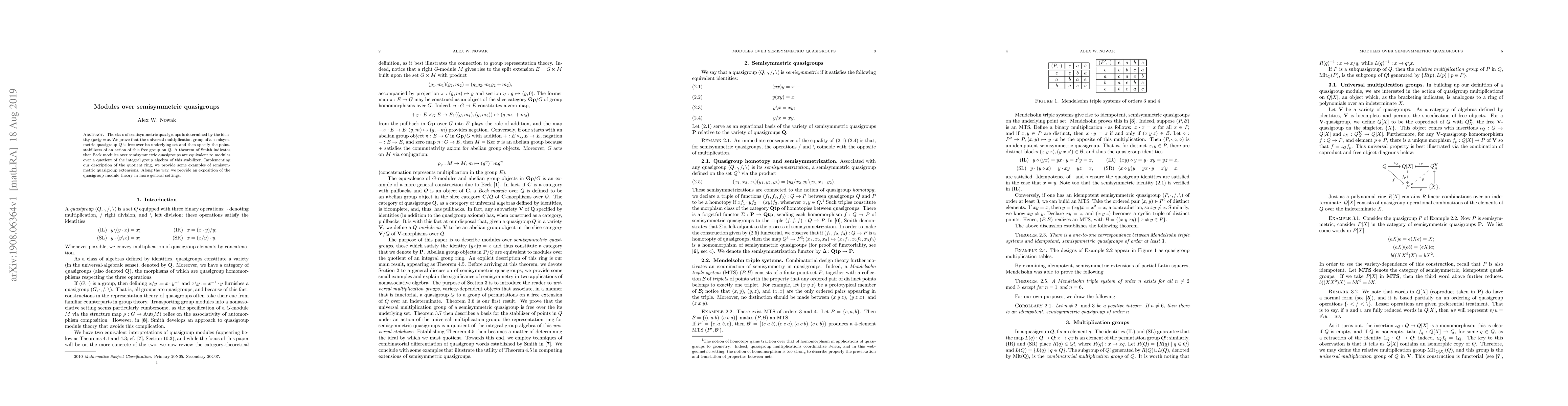 The class of semisymmetric quasigroups is determined by the identity $(yx)y=x.$ We prove that the universal multiplication group of a semisymmetric quasigroup $Q$ is free over its underlying set and then specify the point-stabilizers of an action of this free group on $Q$. A theorem of Smith indicates that Beck modules over semisymmetric quasigroups are equivalent to modules over a quotient of the integral group algebra of this stabilizer. Implementing our description of the quotient ring, we provide some examples of semisymmetric quasigroup extensions. Along the way, we provide an exposition of the quasigroup module theory in more general settings.