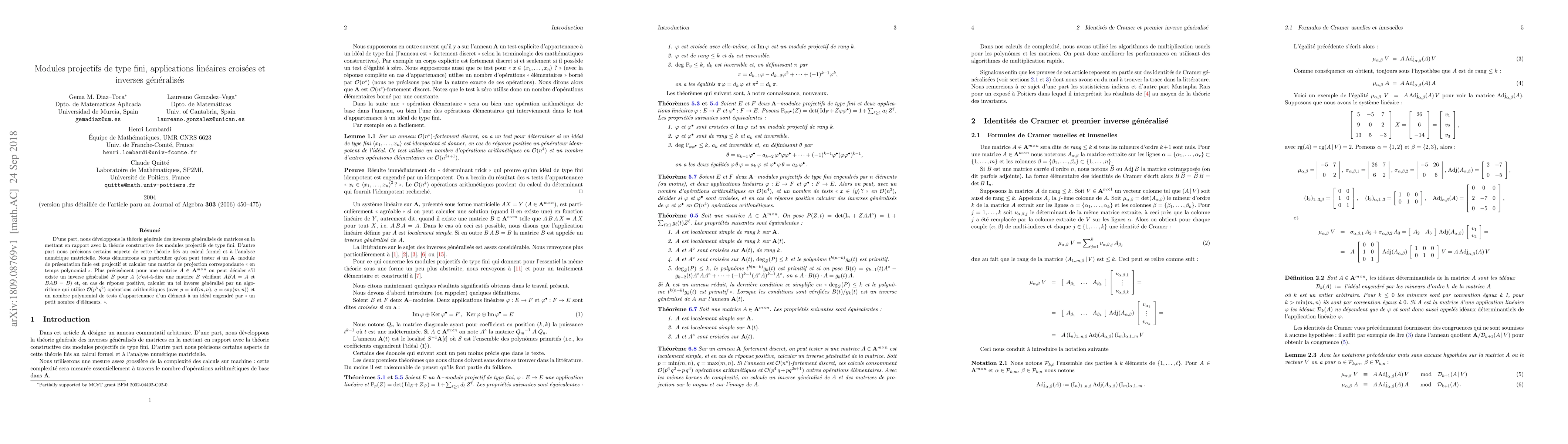 We give a general theory of generalised inverses and we explain the link with the theory of finitely generated projective modules. All the paper is written in constrctive mathematics in Bishop style. So all results do have a clear algorithmic content. We give also a complexity analysis of the algorihms corresponding to the main theorems. Here is a more detailed abstract in french: D'une part, nous d\'eveloppons la th\'eorie g\'en\'erale des inverses g\'en\'eralis\'es de matrices en la mettant en rapport avec la th\'eorie constructive des modules projectifs de type fini. D'autre part nous pr\'ecisons certains aspects de cette th\'eorie li\'es au calcul formel et \`a l'analyse num\'erique matricielle. Nous d\'emontrons en particulier qu'on peut tester si un $\bf A$-module de pr\'esentation finie est projectif et calculer une matrice de projection correspondante "en temps polynomial". Plus pr\'ecis\'ement pour une matrice $A\in {\bf A}^{m \times n}$ on peut d\'ecider s'il existe un inverse g\'en\'eralis\'e $B$ pour $A$ (i.e. une matrice $B$ v\'erifiant $ABA=A$ et $BAB=B$) et, en cas de r\'eponse positive, calculer un tel inverse g\'en\'eralis\'e par un algorithme qui utilise $O(p^6\,q^{2})$ op\'erations arithm\'etiques (avec $p=\inf(m,n)$, $q=\sup(m,n)$) et un nombre polynomial de tests d'appartenance d'un \'el\'ement \`a un id\'eal engendr\'e par "un petit nombre d'\'el\'ements".