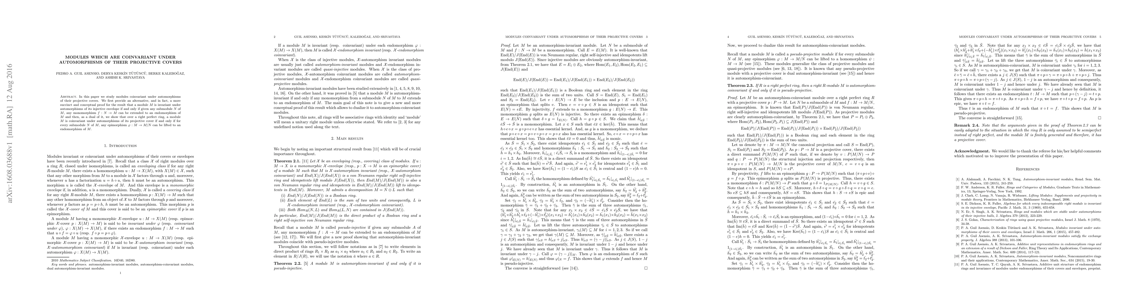 This paper provides a conceptual proof for modules invariant under automorphisms of their injective envelopes and dually shows for right perfect rings that a module is coinvariant under automorphisms of its projective cover if every epimorphism to a quotient can be lifted to an endomorphism.