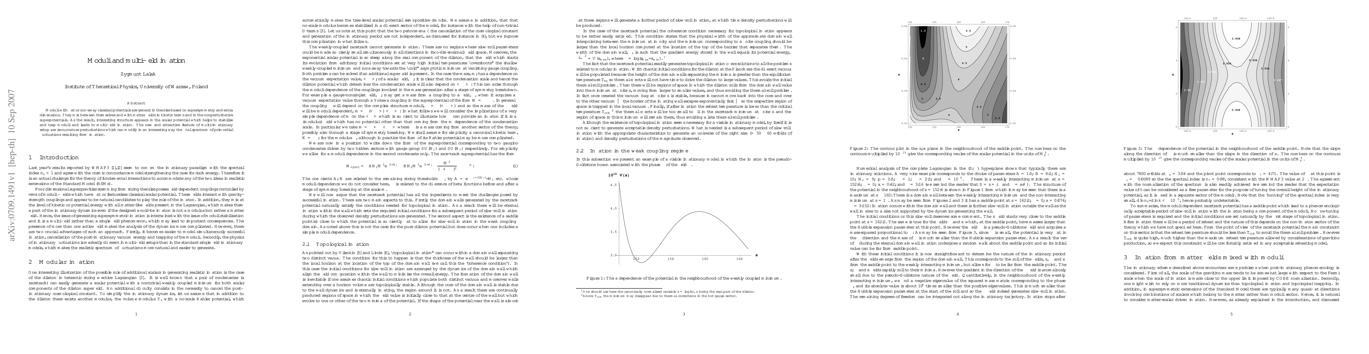 Moduli with flat or run-away classical potentials are generic in theories based on supersymmetry and extra dimensions. They mix between themselves and with matter fields in kinetic terms and in the nonperturbative superpotentials. As the result, interesting structure appears in the scalar potential which helps to stabilise and trap moduli and leads to multi-field inflation. The new and attractive feature of multi-inflationary setup are isocurvature perturbations which can modify in an interesting way the final spectrum of primordial fluctuations resulting from inflation.