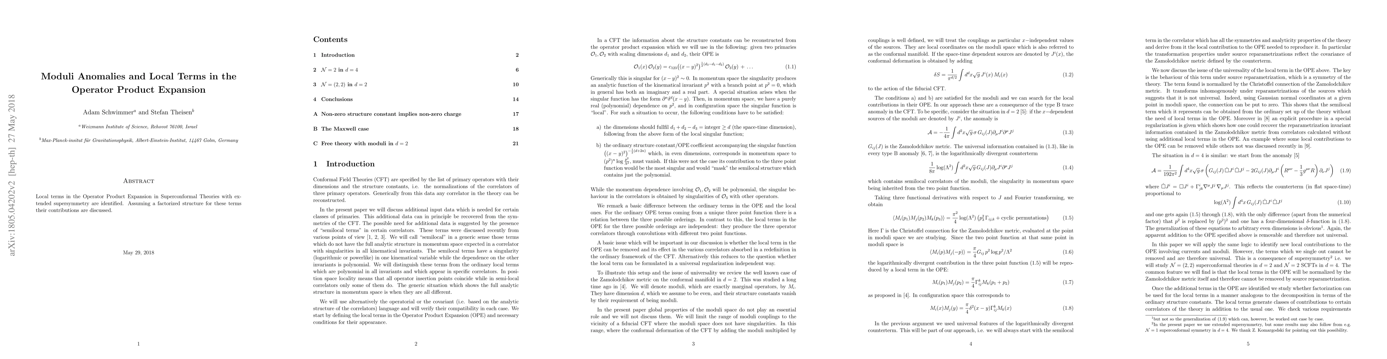 Local terms in the Operator Product Expansion in Superconformal Theories with extended supersymmetry are identified. Assuming a factorized structure for these terms their contributions are discussed.