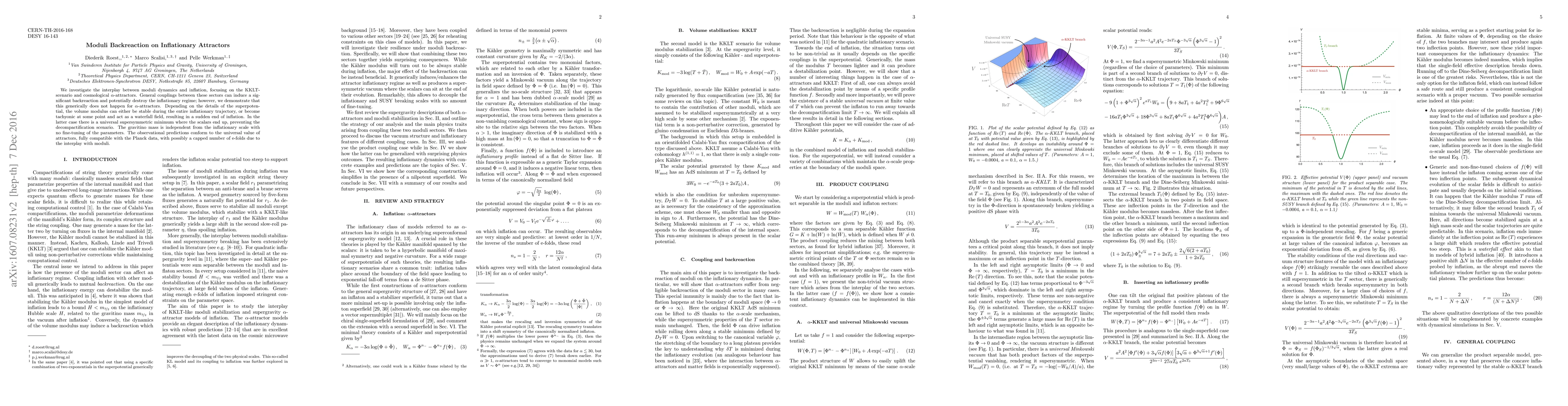 This paper explores the dynamics of moduli fields in the context of inflationary attractors, specifically within the KKLT scenario and $\alpha$-attractors. It finds that moduli backreaction does not generally disrupt inflation in $\alpha$-attractors, with the volume modulus either remaining stable or triggering a sudden end to inflation as a waterfall field, leading to a universal supersymmetric minimum.