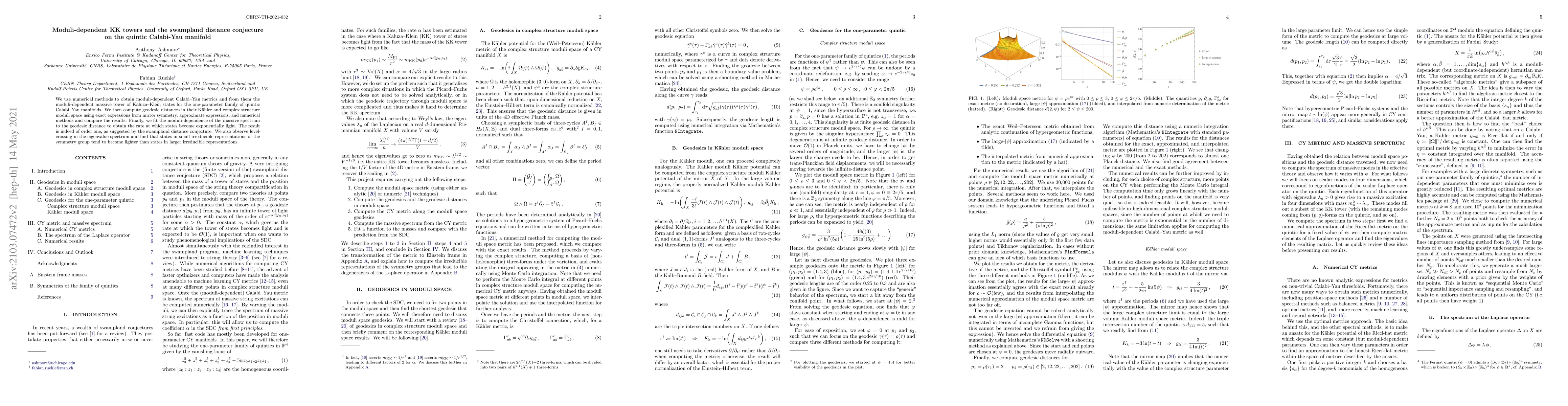 This paper investigates the moduli-dependent KK towers for quintic Calabi-Yau manifolds, deriving metrics and corresponding Kaluza-Klein states. It computes geodesic distances in moduli space and finds that the rate at which states become exponentially light aligns with the swampland distance conjecture, also noting level-crossing and lighter states in smaller symmetry representations.