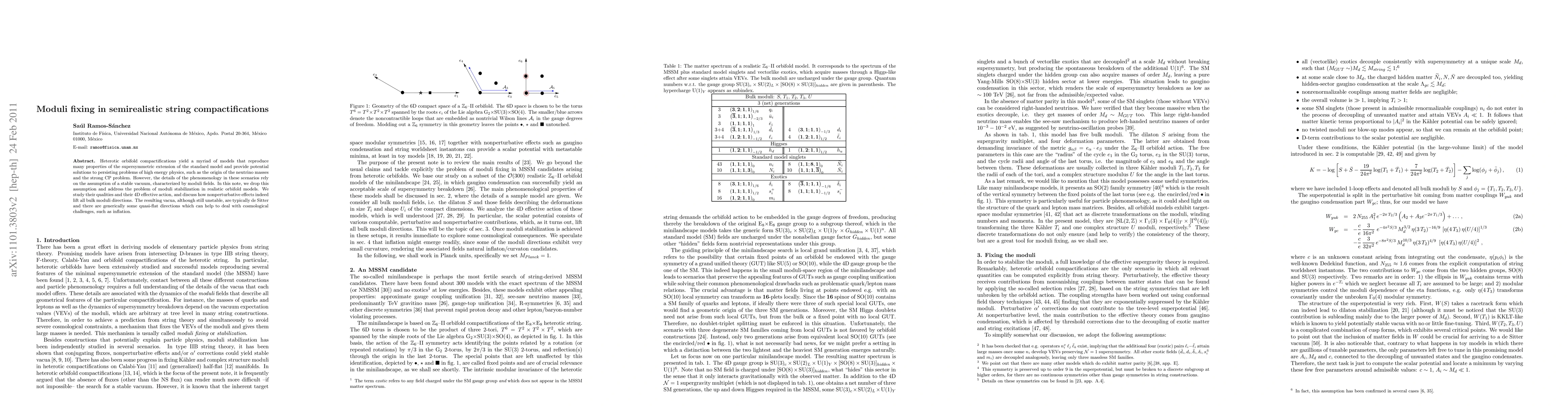 Heterotic orbifold compactifications yield a myriad of models that reproduce many properties of the supersymmetric extension of the standard model and provide potential solutions to persisting problems of high energy physics, such as the origin of the neutrino masses and the strong CP problem. However, the details of the phenomenology in these scenarios rely on the assumption of a stable vacuum, characterized by moduli fields. In this note, we drop this assumption and address the problem of moduli stabilization in realistic orbifold models. We study their qualities and their 4D effective action, and discuss how nonperturbative effects indeed lift all bulk moduli directions. The resulting vacua, although still unstable, are typically de Sitter and there are generically some quasi-flat directions which can help to deal with cosmological challenges, such as inflation.