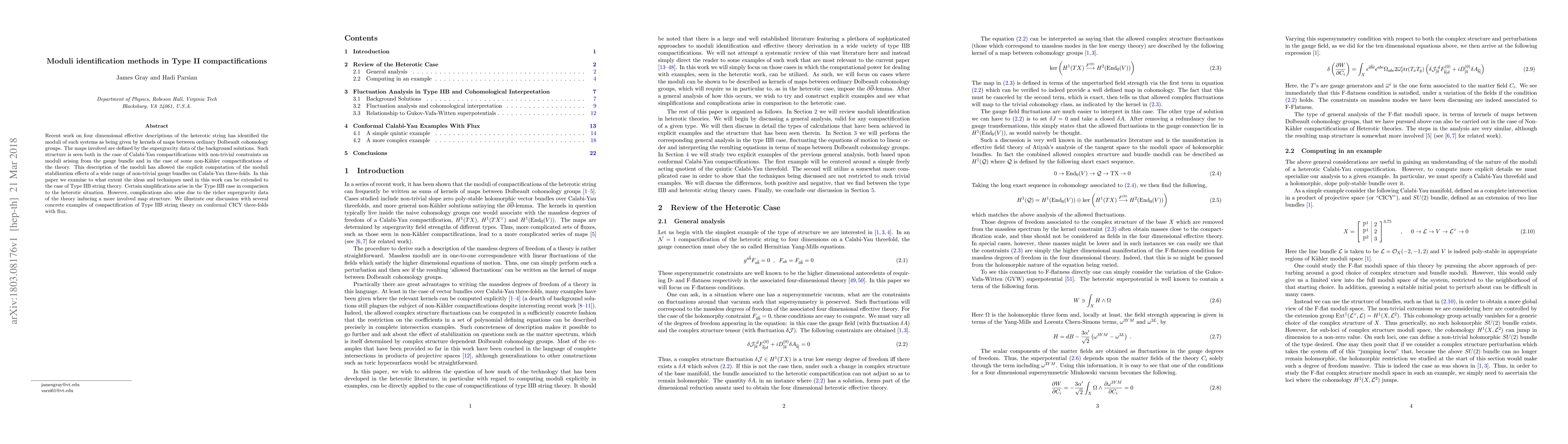 Researchers explore how moduli identification methods from heterotic string theory can be applied to Type IIB string theory, revealing similarities and complications in the process.