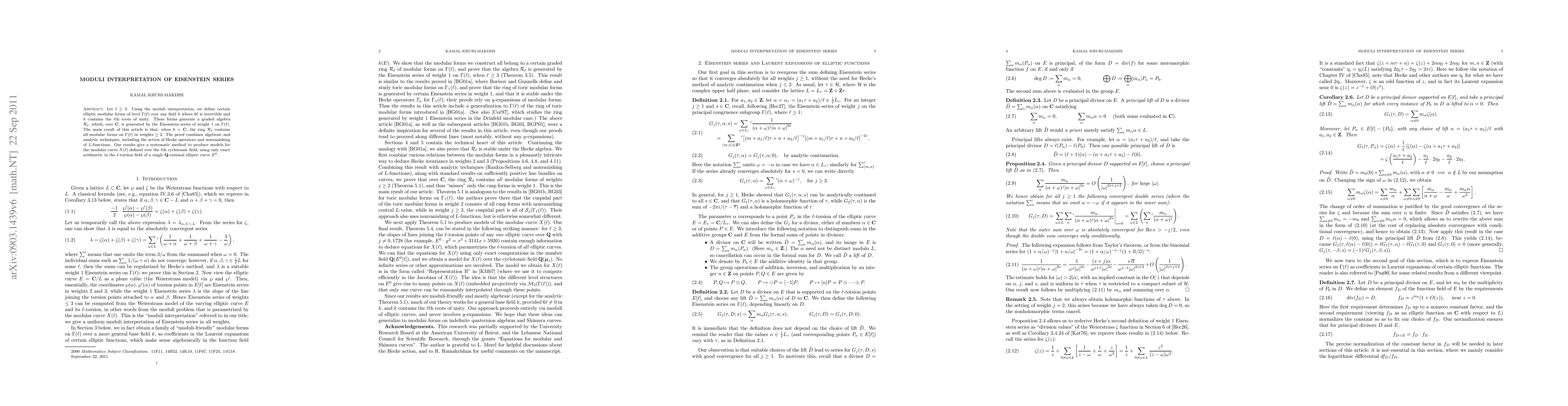 Let L >= 3. Using the moduli interpretation, we define certain elliptic modular forms of level Gamma(L) over any field k where 6L is invertible and k contains the Lth roots of unity. These forms generate a graded algebra R_L, which, over C, is generated by the Eisenstein series of weight 1 on Gamma(L). The main result of this article is that, when k=C, the ring R_L contains all modular forms on Gamma(L) in weights >= 2. The proof combines algebraic and analytic techniques, including the action of Hecke operators and nonvanishing of L-functions. Our results give a systematic method to produce models for the modular curve X(L) defined over the Lth cyclotomic field, using only exact arithmetic in the L-torsion field of a single Q-rational elliptic curve E^0.