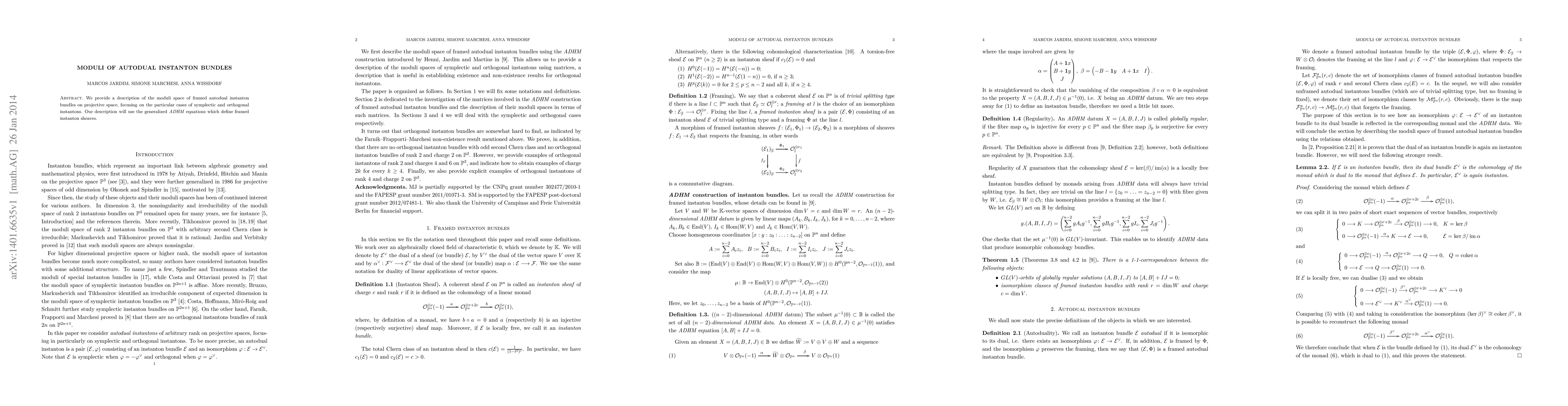 The research utilizes the generalized ADHM equations to describe the moduli space of framed autodual instanton bundles on projective space, focusing on symplectic and orthogonal instantons.
