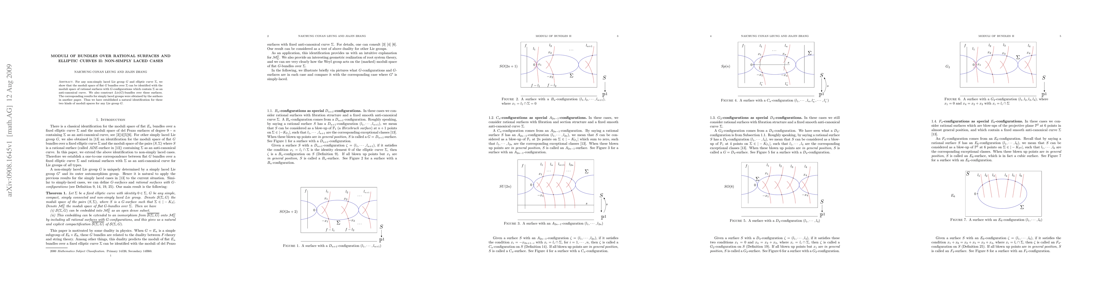 For any non-simply laced Lie group $G$ and elliptic curve $\Sigma$, we show that the moduli space of flat $G$ bundles over $\Sigma$ can be identified with the moduli space of rational surfaces with $G$-configurations which contain $\Sigma$ as an anti-canonical curve. We also construct $Lie(G)$-bundles over these surfaces. The corresponding results for simply laced groups were obtained by the authors in another paper. Thus we have established a natural identification for these two kinds of moduli spaces for any Lie group $G$.