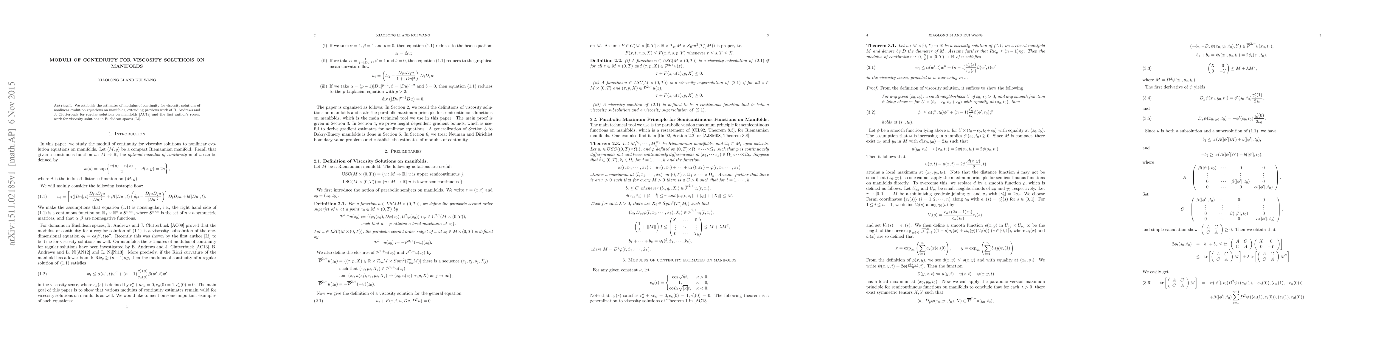 This paper extends previous results on moduli of continuity for regular solutions to nonlinear evolution equations on manifolds, now applying the same techniques to viscosity solutions, building on the authors' prior work in Euclidean spaces.