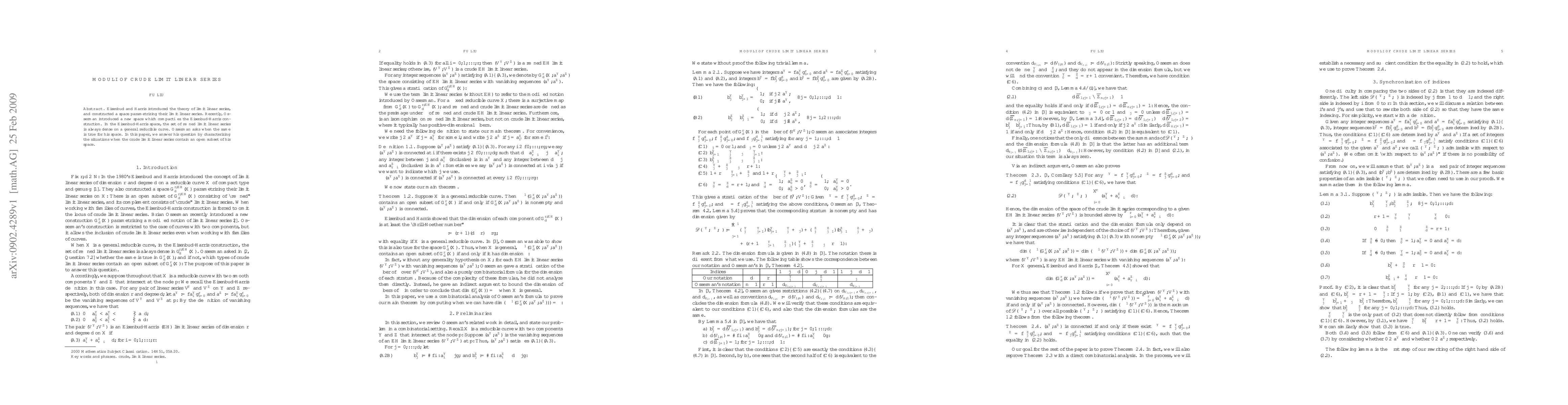 A new theorem was proven that establishes the existence of limit line series under certain conditions.