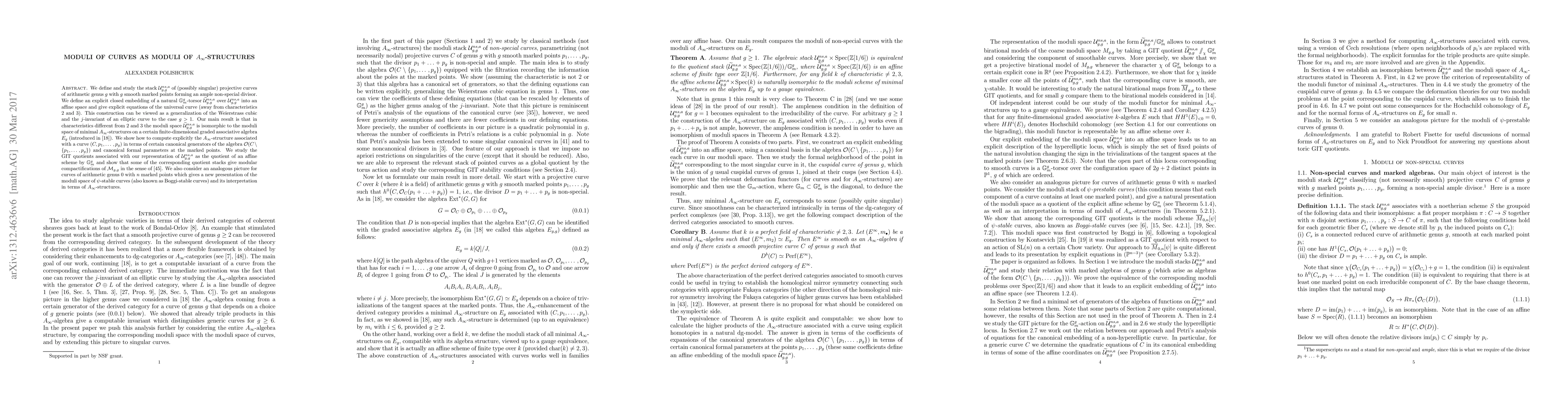 We define and study the stack ${\mathcal U}^{ns,a}_{g,g}$ of (possibly singular) projective curves of arithmetic genus g with g smooth marked points forming an ample non-special divisor. We define an explicit closed embedding of a natural ${\mathbb G}_m^g$-torsor over ${\mathcal U}^{ns,a}_{g,g}$ into an affine space and give explicit equations of the universal curve (away from characteristics 2 and 3). This construction can be viewed as a generalization of the Weierstrass cubic and the j-invariant of an elliptic curve to the case g>1. Our main result is that in characteristics different from 2 and 3 our moduli space of non-special curves is isomorphic to the moduli space of minimal A-infinity structures on a certain finite-dimensional graded associative algebra $E_g$ (introduced in arXiv:1208.6332). We show how to compute explicitly the A-infinity structure associated with a curve $(C,p_1,...,p_g)$ in terms of certain canonical generators of the algebra of functions on $C-\{p_1,...,p_g\}$ and canonical formal parameters at the marked points. We study the GIT quotients associated with our representation of ${\mathcal U}^{ns,a}_{g,g}$ as the quotient of an affine scheme by ${\mathbb G}_m^g$ and show that some of the corresponding stack quotients give modular compactifications of ${\mathcal M}_{g,g}$ in the sense of arXiv:0902.3690. We also consider an analogous picture for curves of arithmetic genus 0 with n marked points which gives a new presentation of the moduli space of $\psi$-stable curves (also known as Boggi-stable curves) and its interpretation in terms of $A_\infty$-structures.