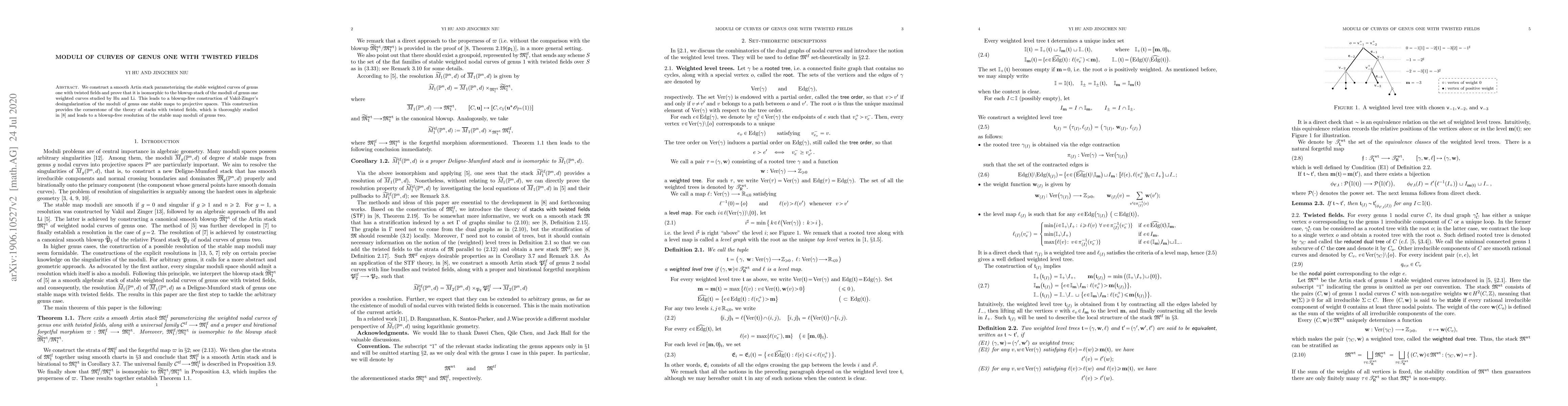 This paper constructs a smooth Artin stack for stable weighted genus one curves with twisted fields, showing it is isomorphic to a blowup stack of previously studied moduli. This leads to a blowup-free desingularization of genus one stable maps, foundational for the theory of stacks with twisted fields.