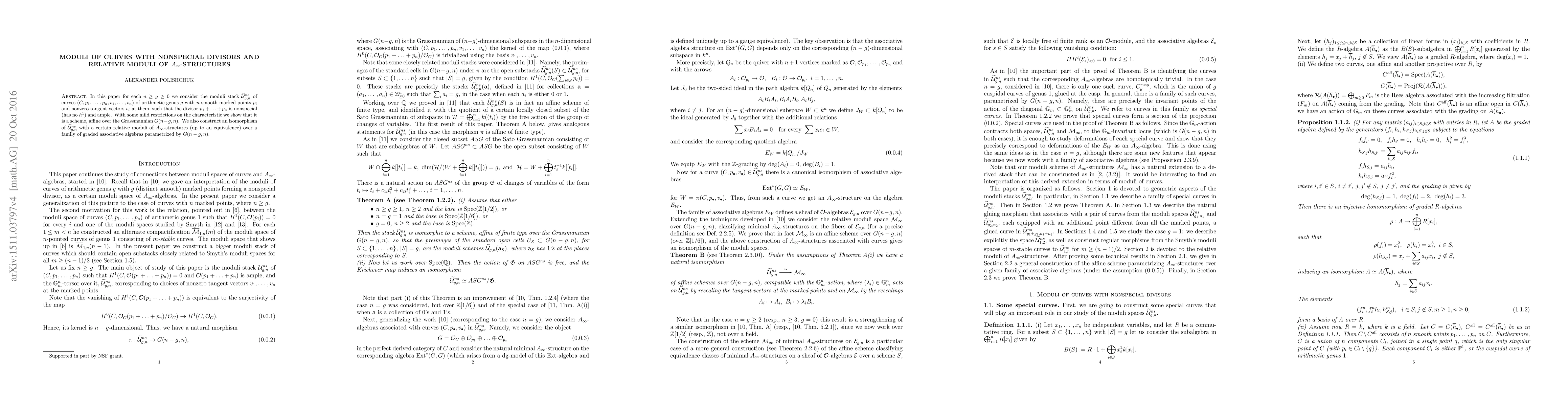 This paper studies the moduli stack $\widetilde{\mathcal U}^{ns}_{g,n}$ of curves with marked points and nonspecial divisors, proving it is a scheme affine over the Grassmannian. It also establishes an isomorphism between this stack and a relative moduli of $A_\infty$-structures over a family of graded associative algebras.