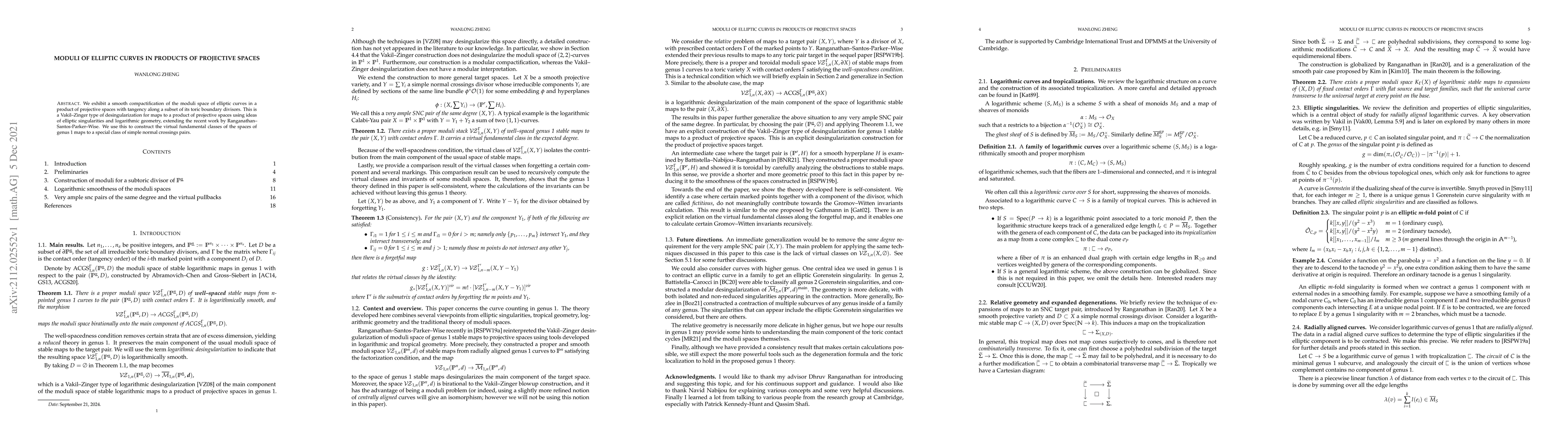 We exhibit a smooth compactification of the moduli space of elliptic curves in a product of projective spaces with tangency along a subset of its toric boundary divisors. This is a Vakil--Zinger type of desingularization for maps to a product of projective spaces using ideas of elliptic singularities and logarithmic geometry, extending the recent work by Ranganathan--Santos-Parker--Wise. We use this to construct the virtual fundamental classes of the spaces of genus 1 maps to a special class of simple normal crossings pairs.
