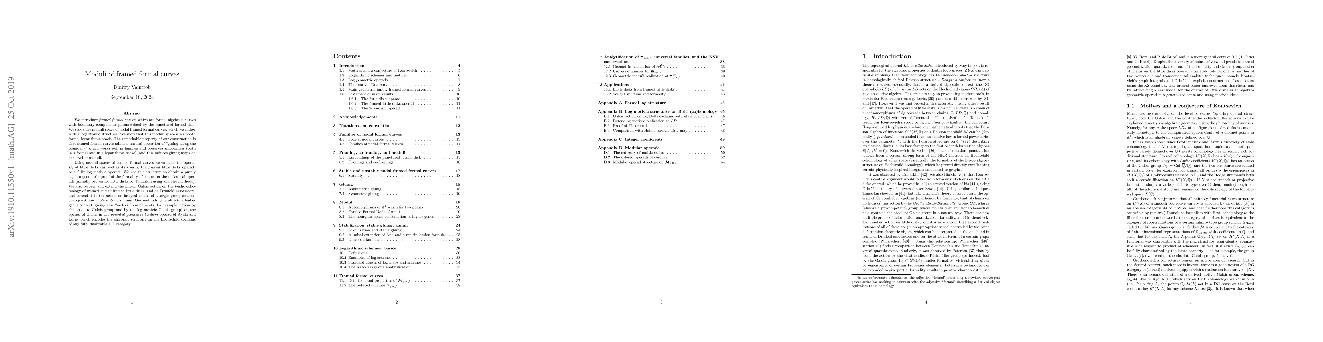 This paper introduces framed formal curves and studies their moduli space, showing it is a smooth formal logarithmic stack. The authors enhance classical operads with a log motivic structure, providing an algebro-geometric proof of their formality and extending known Galois actions to include the log motivic Galois group, with generalizations to higher genus contexts.