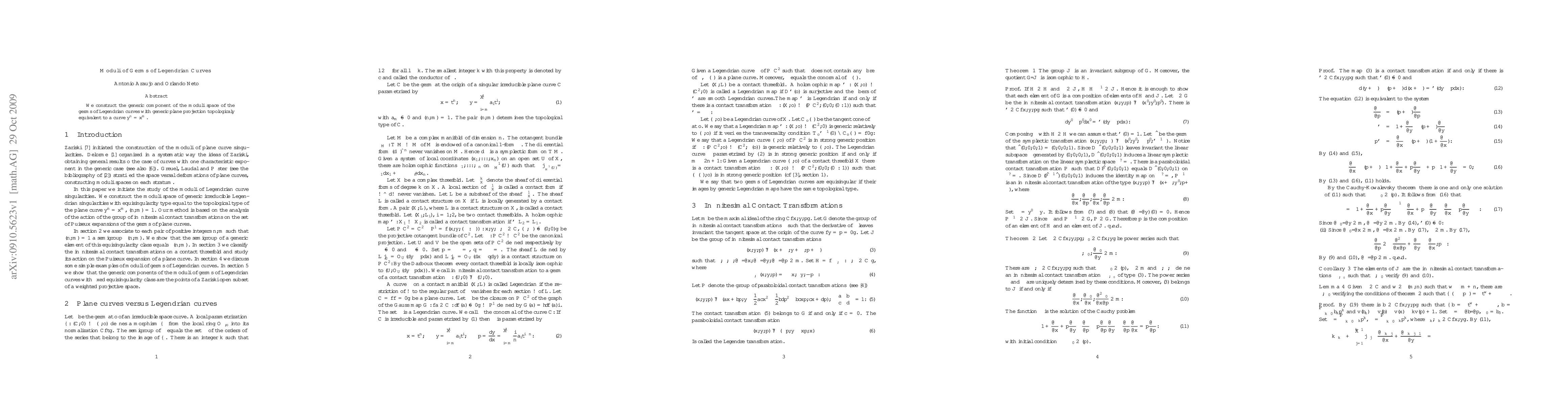 Summary: This paper constructs the generic component of the moduli space for germs of Legendrian curves, focusing on those with a plane projection topologically equivalent to a curve defined by y^n = x^m, where (n,m) is coprime. The study aims to understand the topological characteristics of these curves.