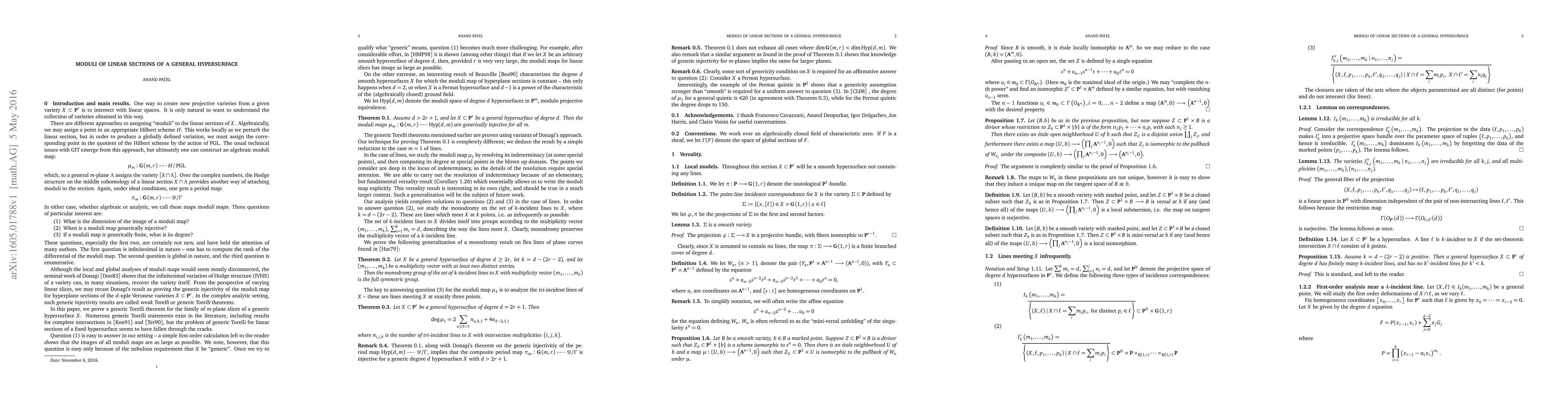 We investigate the global variation of moduli of linear sections of a general hypersurface. We prove a "generic Torelli" result for a large proportion of cases, and we obtain a complete picture of the global variation of moduli of line slices of a general hypersurface.