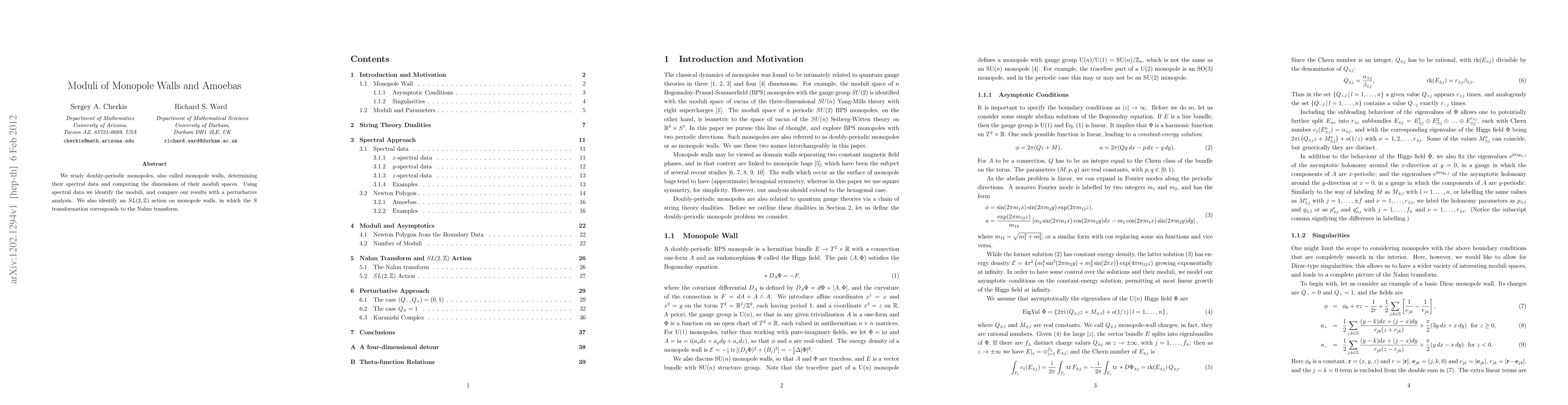 Researchers studied monopole walls, determining their spectral data and dimensions of moduli spaces to identify key properties and compare with perturbative analysis.