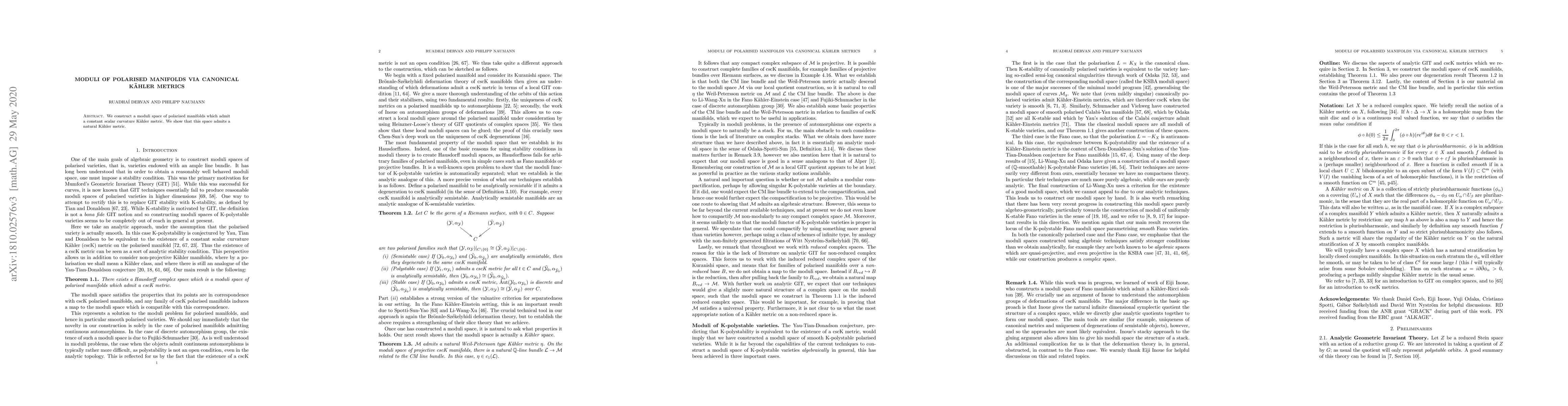 Summary: This paper constructs a moduli space for polarised manifolds with constant scalar curvature Kähler metrics, demonstrating that this space naturally possesses a Kähler metric.