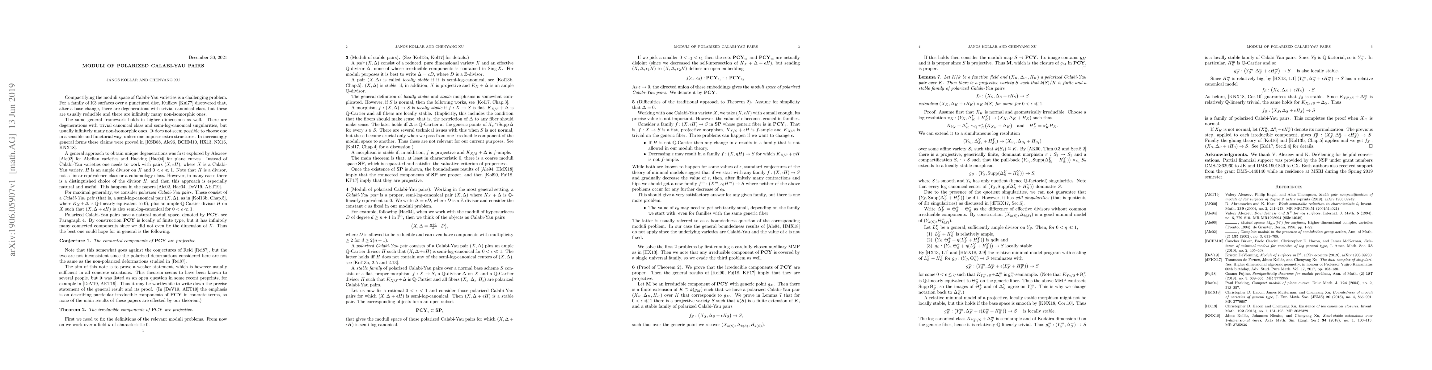 Summary: The paper establishes that the irreducible components of the moduli space for polarized Calabi-Yau pairs possess projective geometry. This result enhances the understanding of the structure of these complex geometric objects.