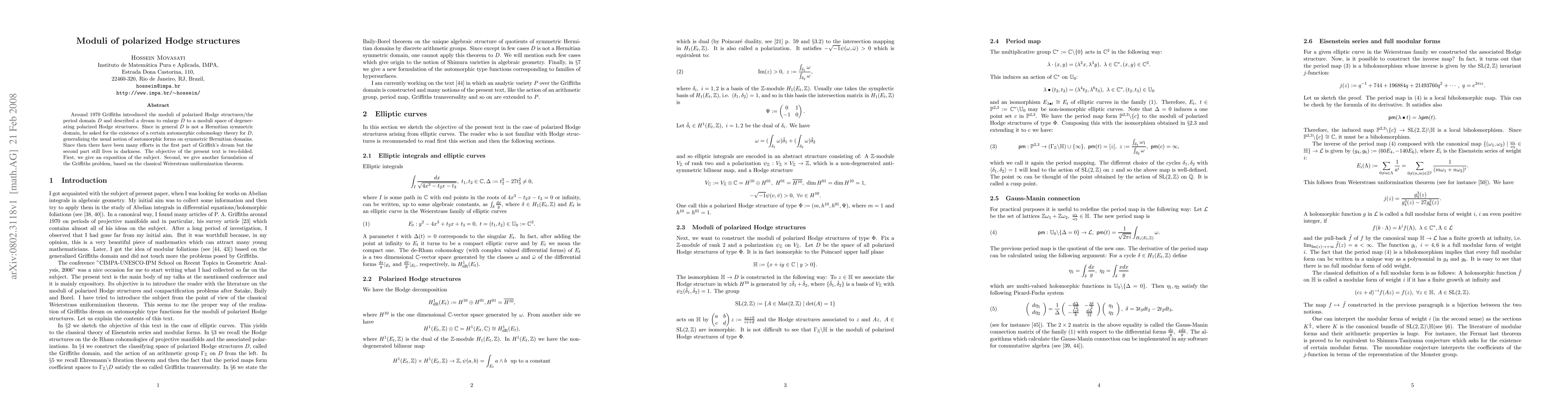 Around 1970 Griffiths introduced the moduli of polarized Hodge structures/the period domain $D$ and described a dream to enlarge $D$ to a moduli space of degenerating polarized Hodge structures. Since in general $D$ is not a Hermitian symmetric domain, he asked for the existence of a certain automorphic cohomology theory for $D$, generalizing the usual notion of automorphic forms on symmetric Hermitian domains. Since then there have been many efforts in the first part of Griffith's dream but the second part still lives in darkness. The objective of the present text is two-folded. First, we give an exposition of the subject. Second, we give another formulation of the Griffiths problem, based on the classical Weierstrass uniformization theorem.