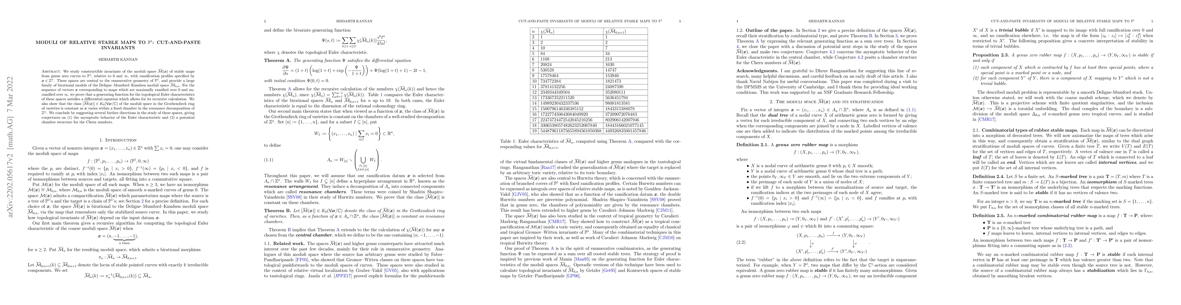 We study constructible invariants of the moduli space $\overline{\mathcal{M}}(\boldsymbol{x})$ of stable maps from genus zero curves to $\mathbb{P}^1$, relative to $0$ and $\infty$, with ramification profiles specified by ${\boldsymbol{x}\in \mathbb{Z}^n}$. These spaces are central to the enumerative geometry of $\mathbb{P}^1$, and provide a large family of birational models of the Deligne--Mumford--Knudsen moduli space $\overline{\mathcal{M}}_{0,n}$. For the sequence of vectors $\boldsymbol{x}$ corresponding to maps which are maximally ramified over $0$ and unramified over $\infty$, we prove that a generating function for the topological Euler characteristics of these spaces satisfies a differential equation which allows for its recursive calculation. We also show that the class of the moduli space in the Grothendieck ring of varieties is constant as $\boldsymbol{x}$ varies within a fixed chamber in the resonance decomposition of $\mathbb{Z}^n$. We conclude by suggesting several further directions in the study of these spaces, giving conjectures on (1) the asymptotic behavior of the Euler characteristic and (2) a potential chamber structure for the Chern numbers.