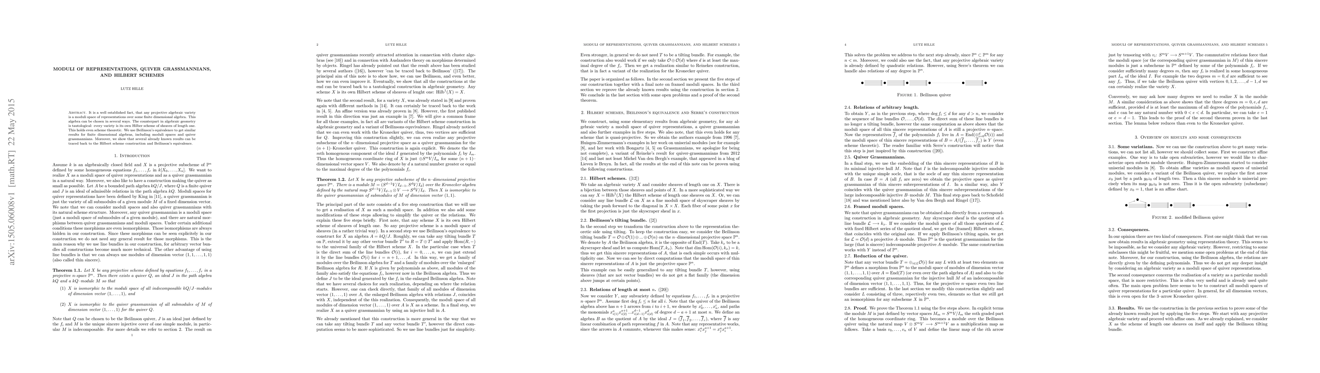 It is a well established fact, that any projective algebraic variety is a moduli space of representations over some finite dimensional algebra. This algebra can be chosen in several ways. The counterpart in algebraic geometry is tautological: every variety is its own Hilber scheme of sheaves of length one. This holds even scheme theoretic. We use Beilinson's equivalence to get similar results for finite dimensional algebras, including moduli spaces and quiver grassmannians. Moreover, we show that several already known results can be traced back to the Hilbert scheme construction and Beilinson's equivalence.