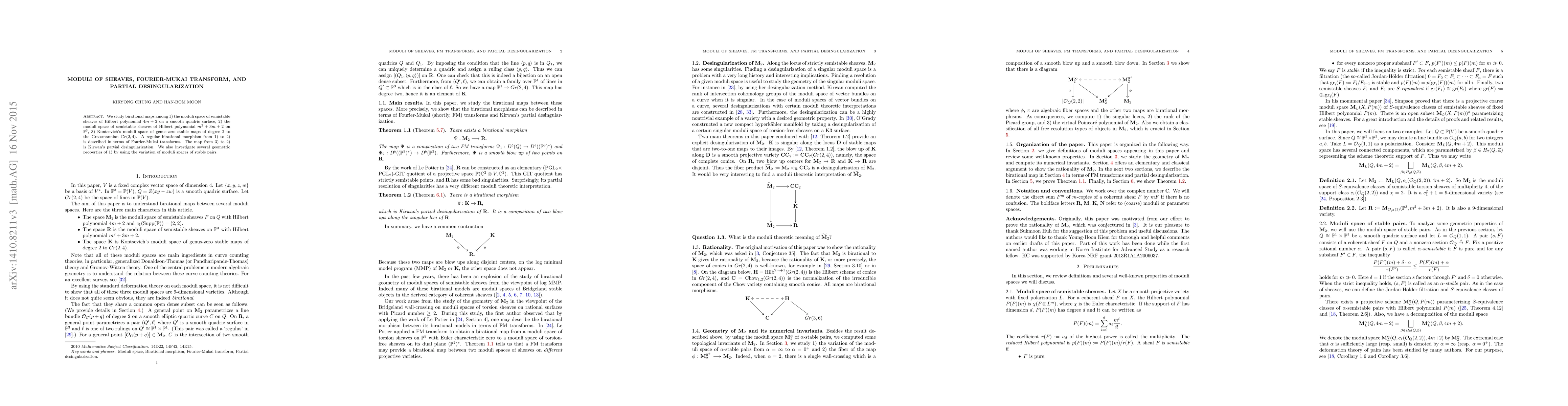 This paper explores birational maps linking moduli spaces of semistable sheaves on different geometric objects, describing a regular birational morphism via the Fourier-Mukai transform and Kirwan's partial desingularization, and investigates geometric properties of one moduli space using stable pairs.