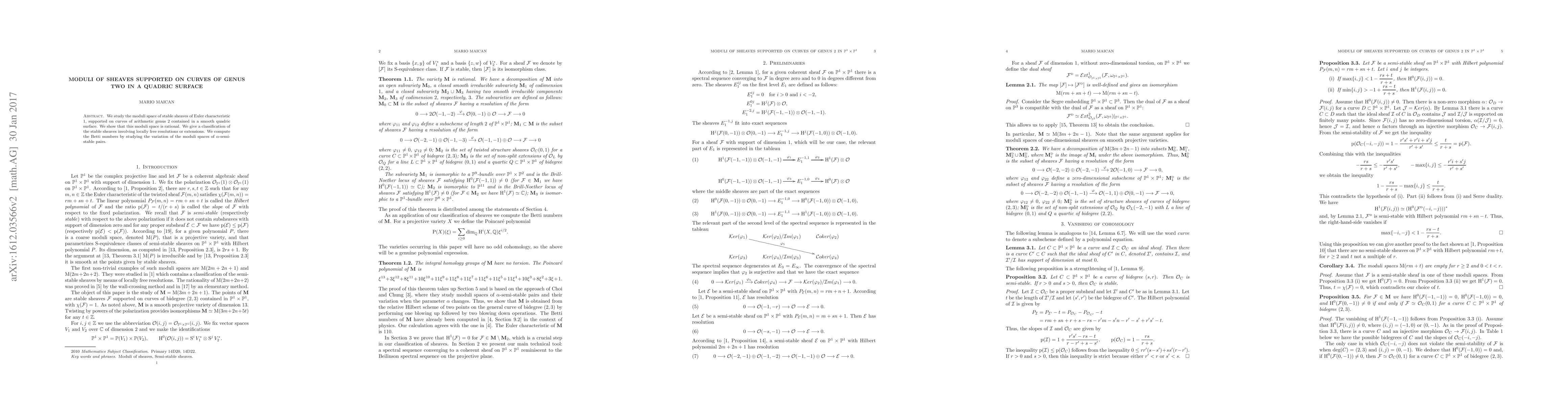 This paper investigates the rational nature of the moduli space for stable sheaves of Euler characteristic 1 on genus 2 curves within a smooth quadric surface, classifying these sheaves through locally free resolutions or extensions, and computes their Betti numbers via the variation of moduli spaces of alpha-semi-stable pairs.
