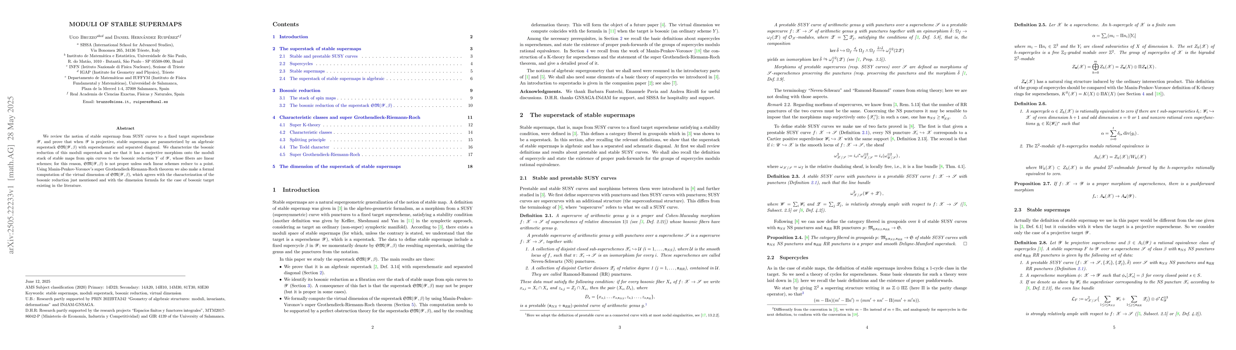 The paper reviews the concept of stable supermaps from SUSY curves to a fixed target superscheme, proving their parameterization by an algebraic superstack with specific properties and characterizing its bosonic reduction.