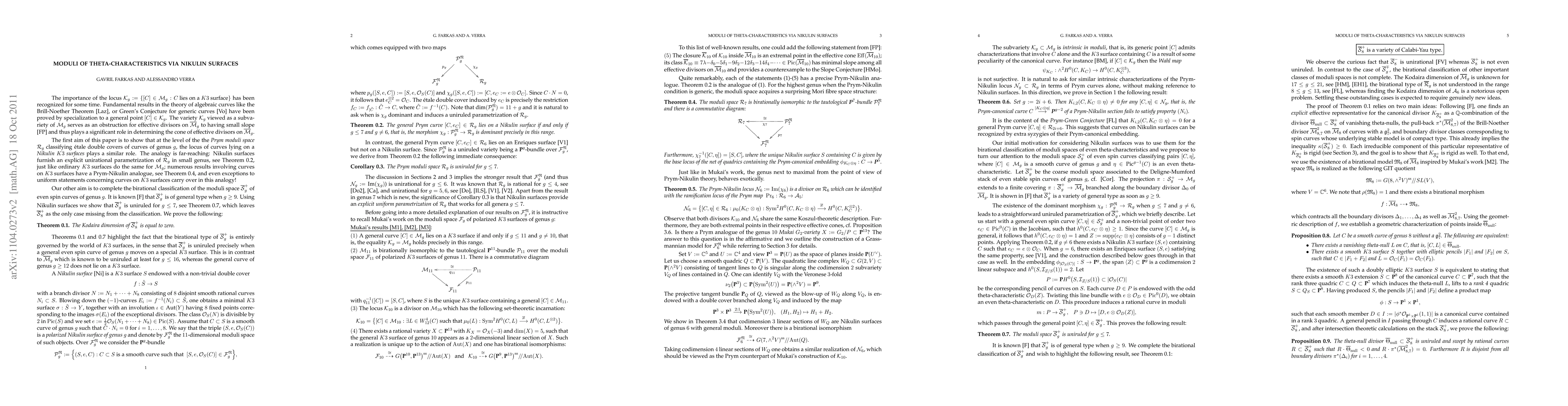 This paper explores the moduli spaces of K3 surfaces with a Nikulin involution and their relation to Prym curves, showing a strong analogy with Mukai’s findings on ordinary K3 surfaces. Key results include: (1) Prym curves are sections of Nikulin surfaces if the genus g ≤ 7 (g≠6), (2) R_7 is structured as a Mori fiber space, (3) the g=6 Prym-Nikulin locus is an extremal divisor with a Grassmannian GIT model, and (4) these loci are characterized by extra syzygies of Prym-canonical curves. The study focuses particularly on the geometry of even spin curves in the moduli space S_g, especially the transition case of S_8, a 21-dimensional Calabi-Yau variety.