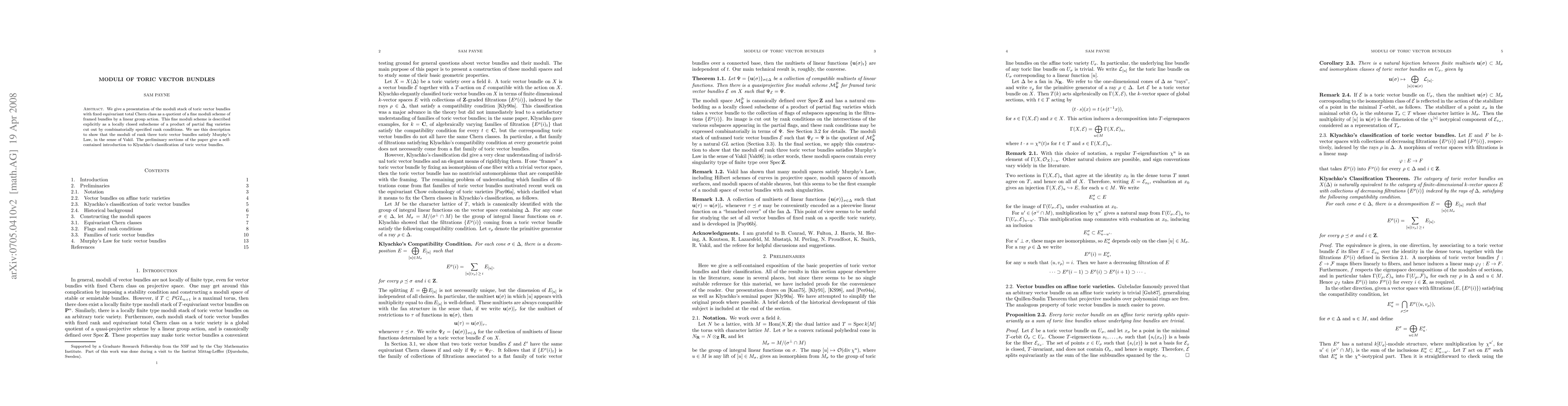 The paper presents a moduli stack of toric vector bundles via a quotient of a fine moduli scheme, explicitly described within a product of partial flag varieties. It demonstrates that the moduli of rank three toric vector bundles satisfy Murphy's Law, utilizing Klyachko's classification framework.