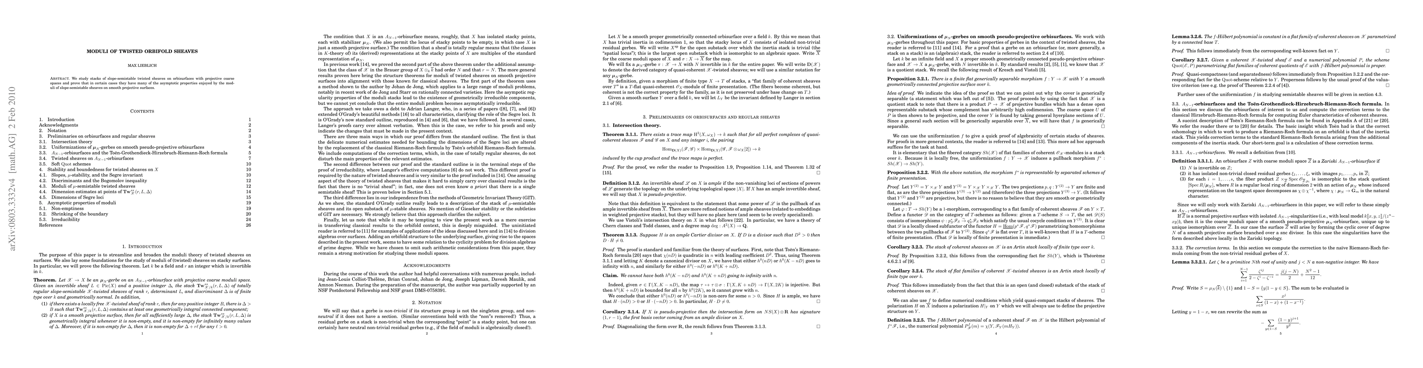The paper's main technical contribution is the proof that under certain conditions, stacks of slope-semistable twisted sheaves on orbisurfaces exhibit asymptotic properties analogous to those of moduli spaces of slope-semistable sheaves on smooth surfaces.