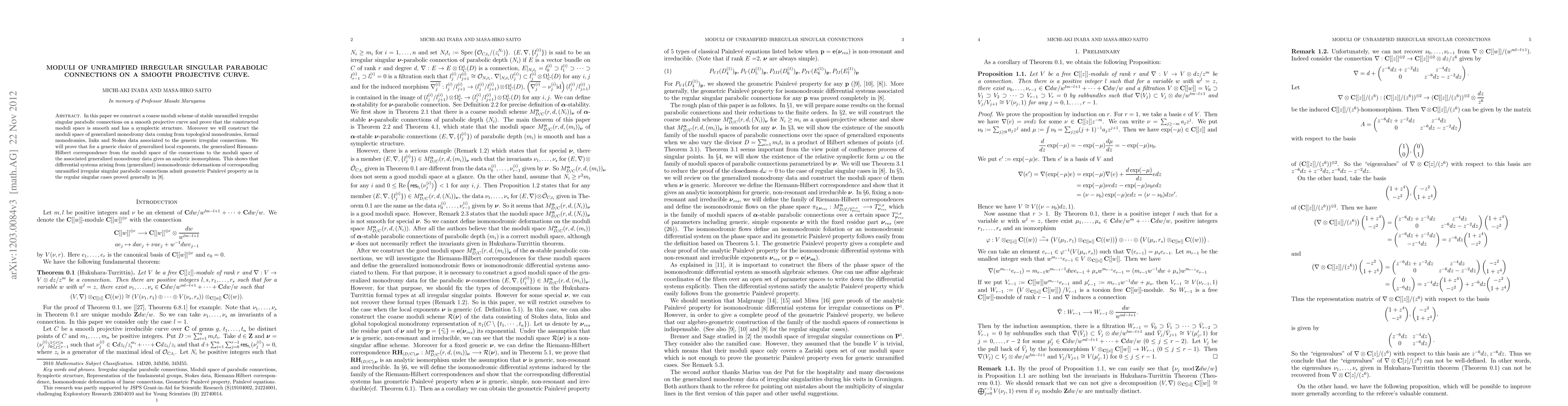 This paper constructs a moduli scheme for stable unramified irregular singular parabolic connections on a smooth projective curve, proving it smooth and symplectic. It also establishes a generalized Riemann-Hilbert correspondence, showing that differential systems from isomonodromic deformations possess a geometric Painlevé property.