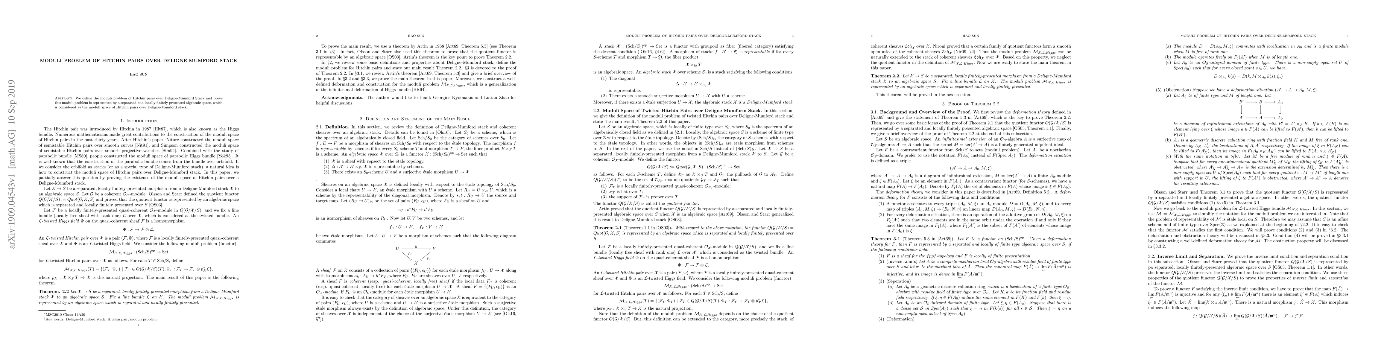 This paper defines the moduli problem for Hitchin pairs over Deligne-Mumford stacks and demonstrates that this problem is represented by a separated and locally finitely presented algebraic space. This space is identified as the moduli space for Hitchin pairs over the stack.