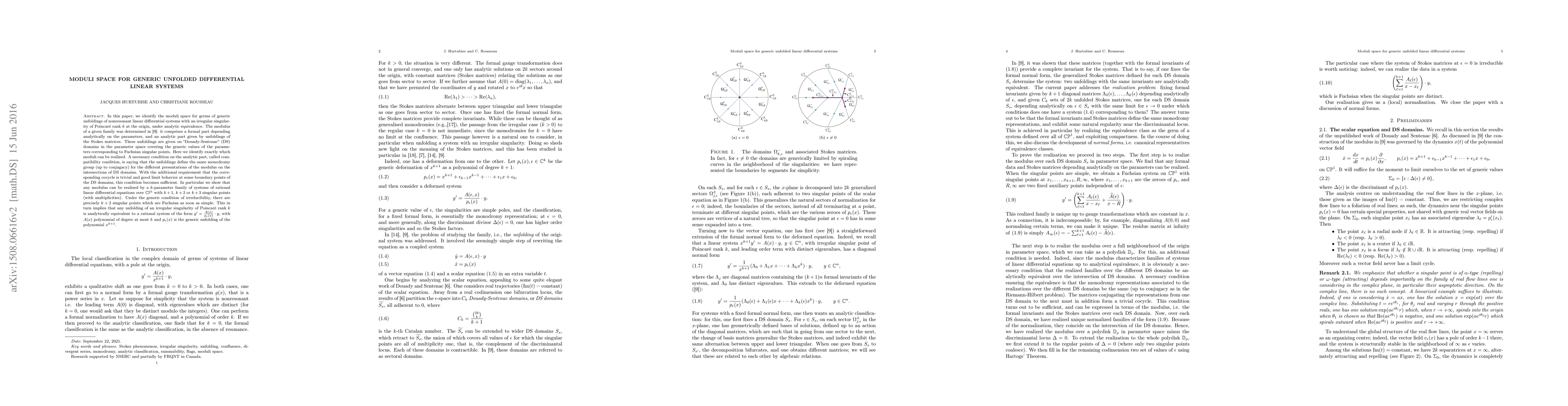 In this paper, we identify the moduli space for germs of generic unfoldings of nonresonant linear differential systems with an irregular singularity of Poincar\'e rank $k$ at the origin, under analytic equivalence. The modulus of a given family was determined in \cite{HLR}: it comprises a formal part depending analytically on the parameters, and an analytic part given by unfoldings of the Stokes matrices. These unfoldings are given on "Douady-Sentenac" (DS) domains in the parameter space covering the generic values of the parameters corresponding to Fuchsian singular points. Here we identify exactly which moduli can be realized. A necessary condition on the analytic part, called compatibility condition, is saying that the unfoldings define the same monodromy group (up to conjugacy) for the different presentations of the modulus on the intersections of DS domains. With the additional requirement that the corresponding cocycle is trivial and good limit behavior at some boundary points of the DS domains, this condition becomes sufficient. In particular we show that any modulus can be realized by a $k$-parameter family of systems of rational linear differential equations over $\mathbb C\mathbb P^1$ with $k+1$, $k+2$ or $k+3$ singular points (with multiplicities). Under the generic condition of irreducibility, there are precisely $k+2$ singular points which are Fuchsian as soon as simple. This in turn implies that any unfolding of an irregular singularity of Poincar\'e rank $k$ is analytically equivalent to a rational system of the form $y'=\frac{A(x)}{p_\epsilon(x)}\cdot y$, with $A(x)$ polynomial of degree at most $k$ and $p_\epsilon(x)$ is the generic unfolding of the polynomial $x^{k+1}$.