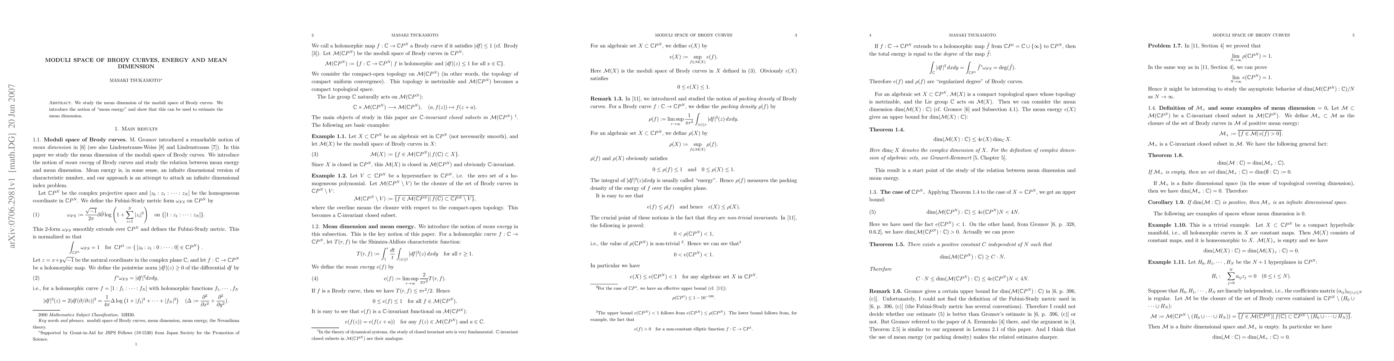 Summary: This paper investigates the mean dimension of the moduli space of Brody curves, introducing the concept of "mean energy" to provide an estimation method for the mean dimension. The relationship between mean energy and mean dimension is explored to enhance understanding of the underlying geometric structures.