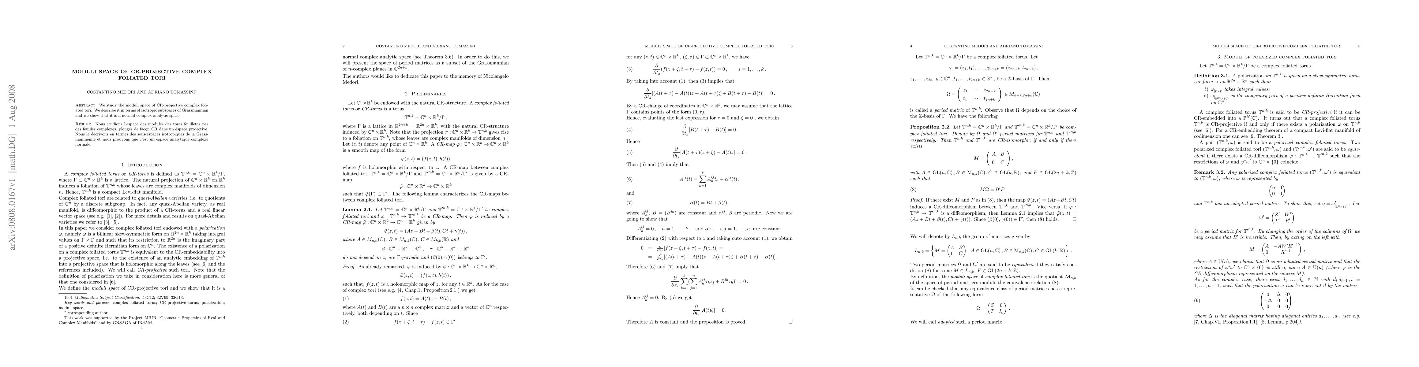 We study the moduli space of CR-projective complex foliated tori. We describe it in terms of isotropic subspaces of Grassmannian and we show that it is a normal complex analytic space.
