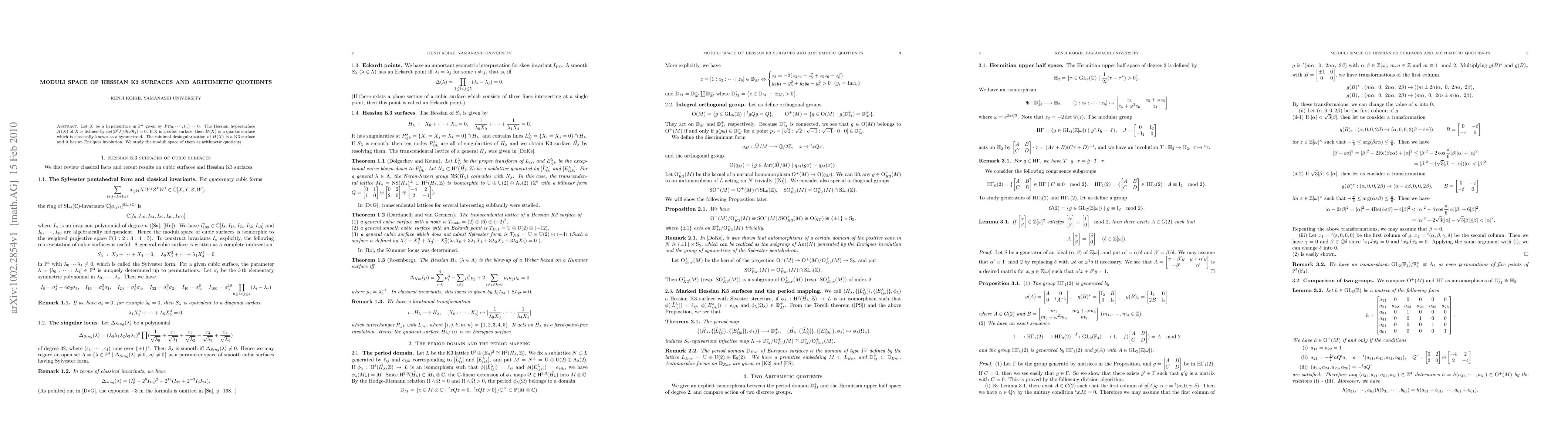 Summary: This paper explores the moduli space of Hessian K3 surfaces through the lens of arithmetic quotients, aiming to understand their geometric and algebraic properties. The study provides insights into the structure and classification of these complex surfaces.