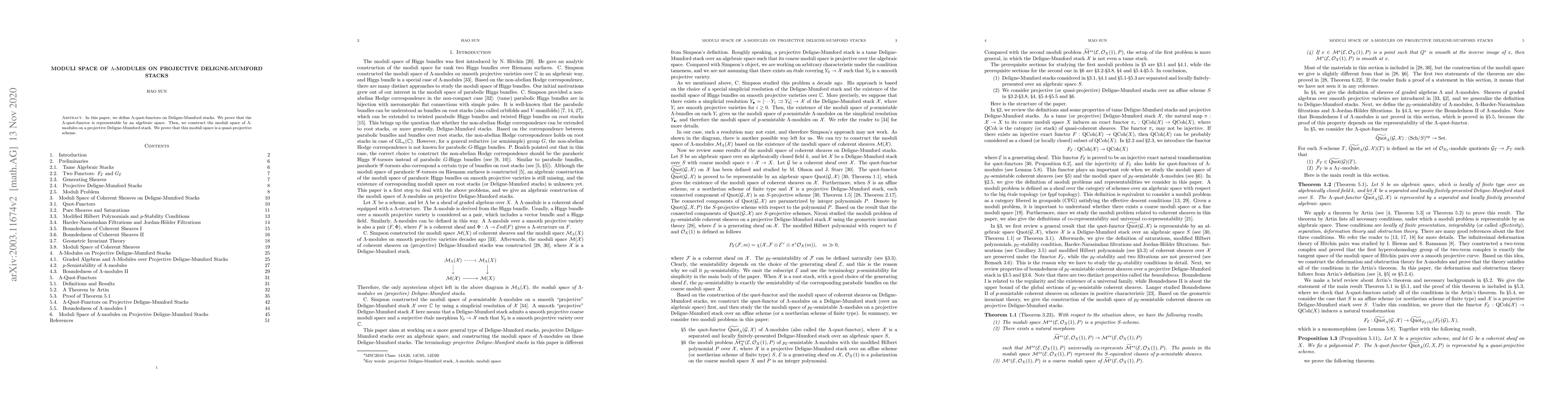 This paper defines $\Lambda$-quot-functors on Deligne-Mumford stacks and shows they are represented by an algebraic space. It further constructs the moduli space of $\Lambda$-modules on a projective Deligne-Mumford stack, proving it to be a quasi-projective scheme.